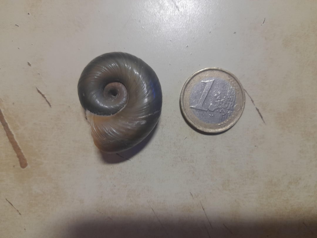 I found a what i thought was an empty snail shell on the side of a small lake in Belgium. It was on the dry ground so I assumed it was empty and dead, I even looked inside it to be sure, so I took it with me. A week later I put it as a decorative piece in my aquarium and it somehow came back to live after sitting on my desk for a week. Does someone know what species of snail this is and if it will eat my plants or not? Thank you!