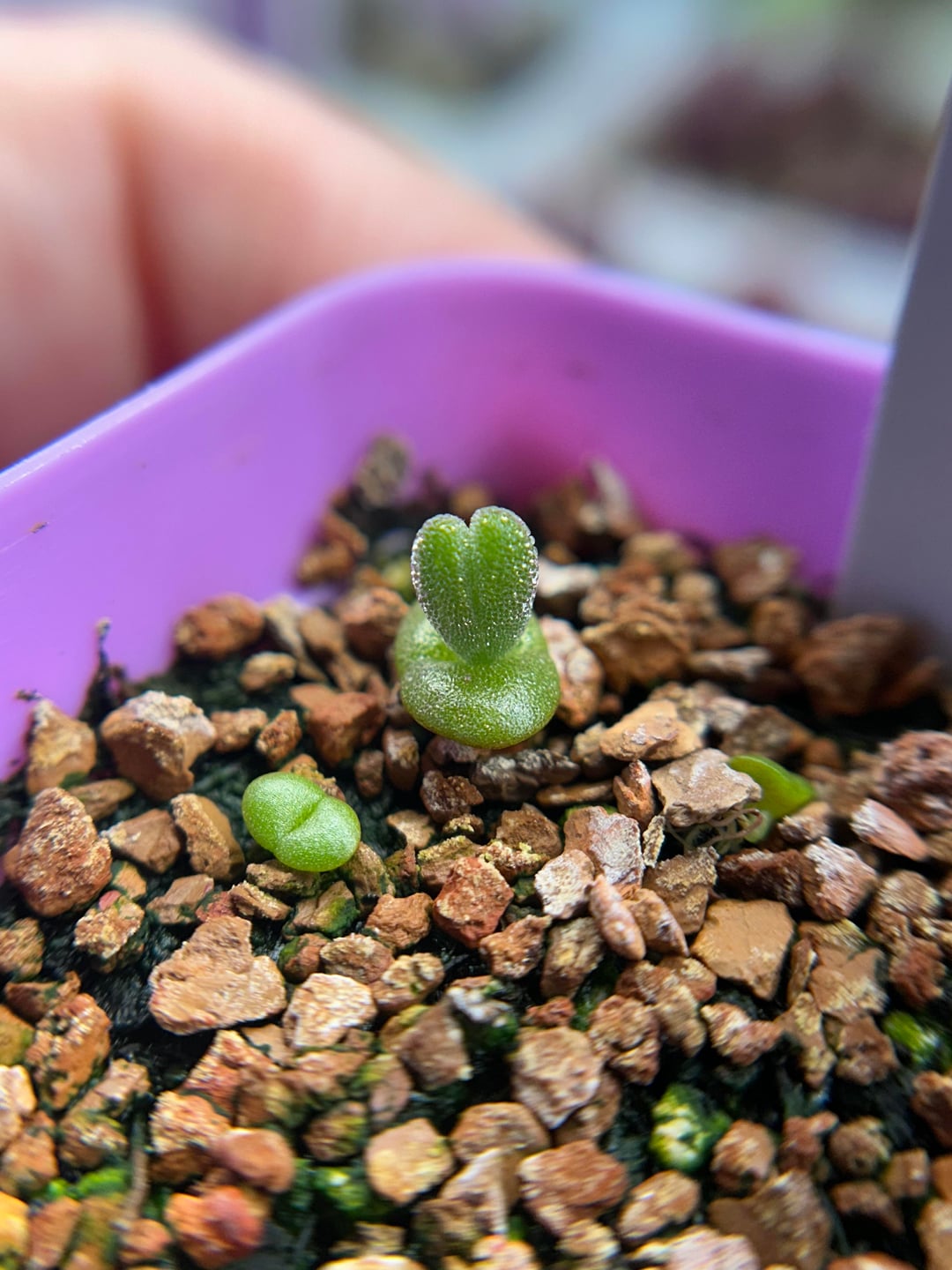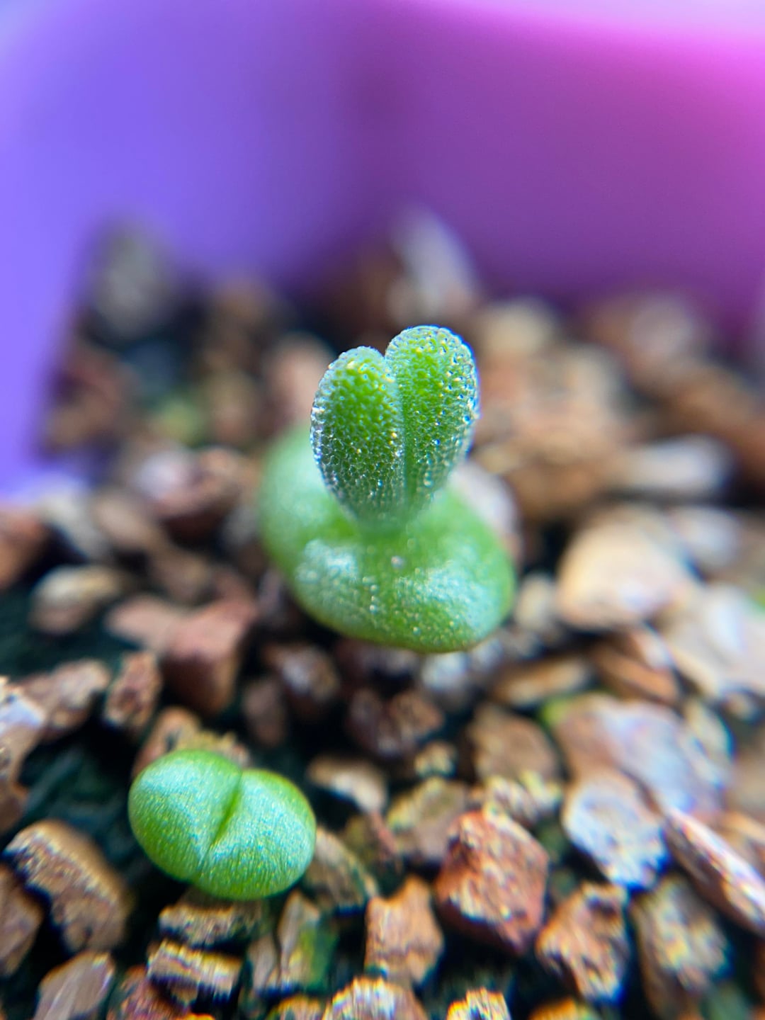 Aren’t they so cute 🥰 Bonus pics of the weird distant cousin who nobody really talks to…. Glottiphyllum of some sort 😂 by CarneyBus Aizoaceaemesembs 1 Comment Cut_Lanky 3 weeks ago Like tiny, oversized bunny slippers…. I love them!