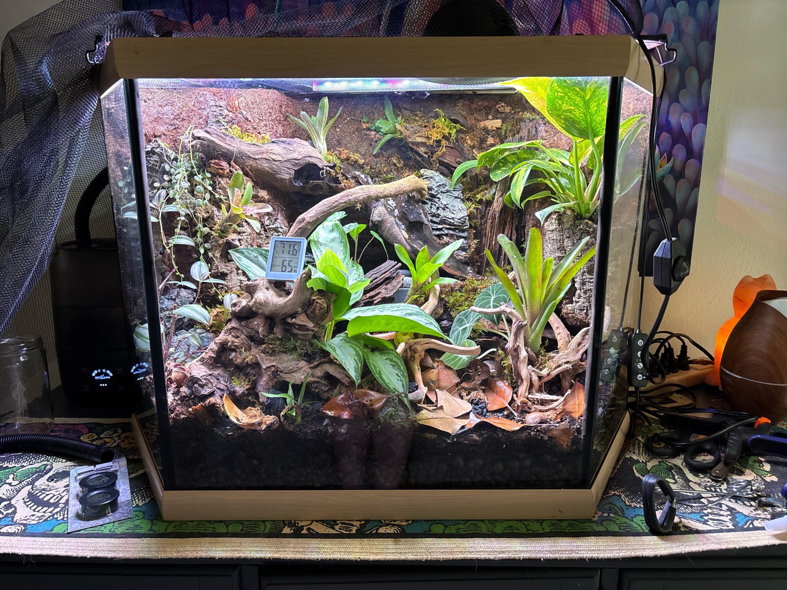 Very beautiful enclosure though!! Currently looks more suited for dart frogs.