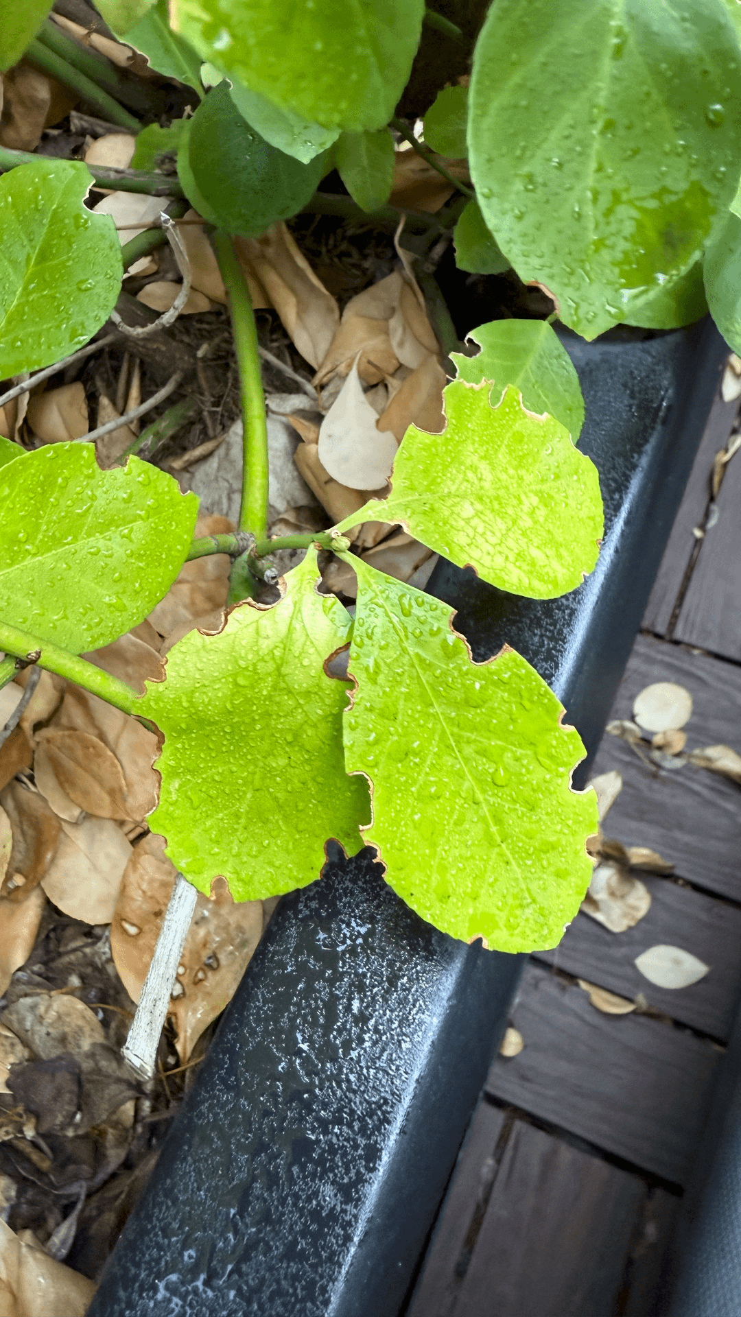 This summer, leafhoppers showed up in droves (never had them before) —but I’ve also discovered another mystery pest that’s been chewing through my leaves (photo attached). I can’t figure out what it is, and it’s eating fast. I noticed it eats lower leaves on the shrub, not higher ones, but that may be because they're newer/fresher leaves.
