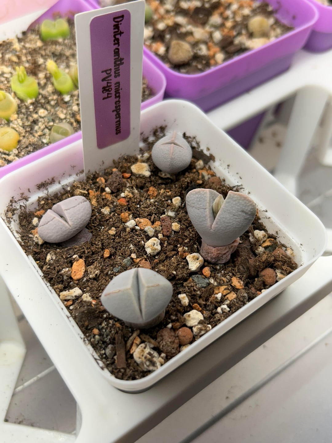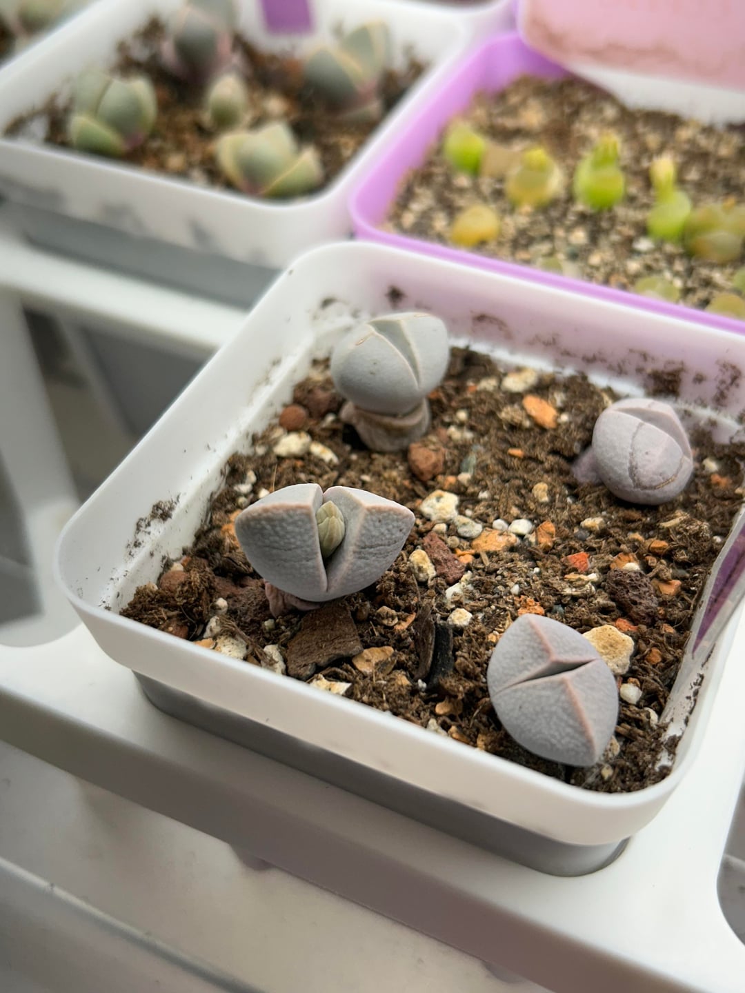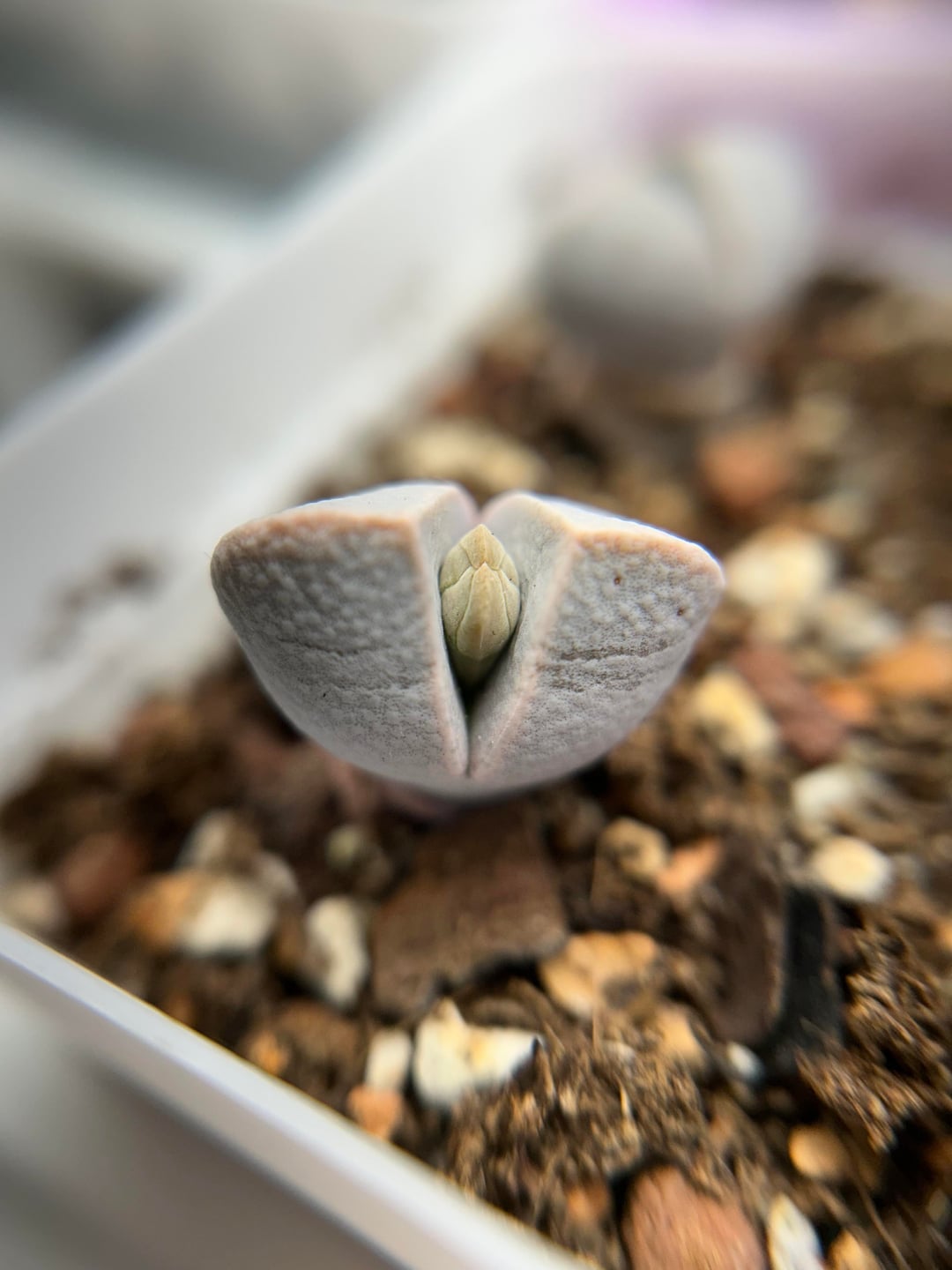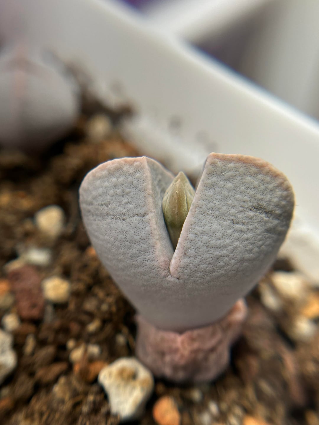 These guys were sown on the same date as the conophytum mayghanii of mine that are blooming.. September 7th I’m pretty sure. Definitely wasn’t expecting a flower from these guys! I have a love hate relationship with the pallid colour of their grey-pink flesh lol
