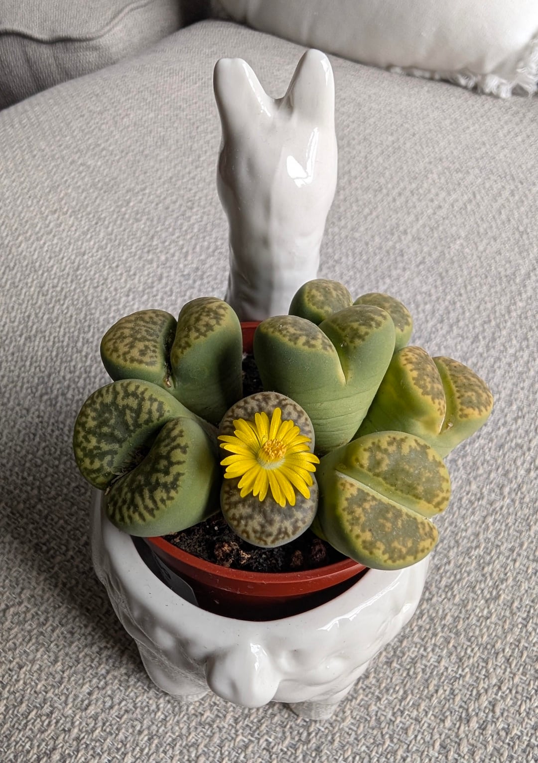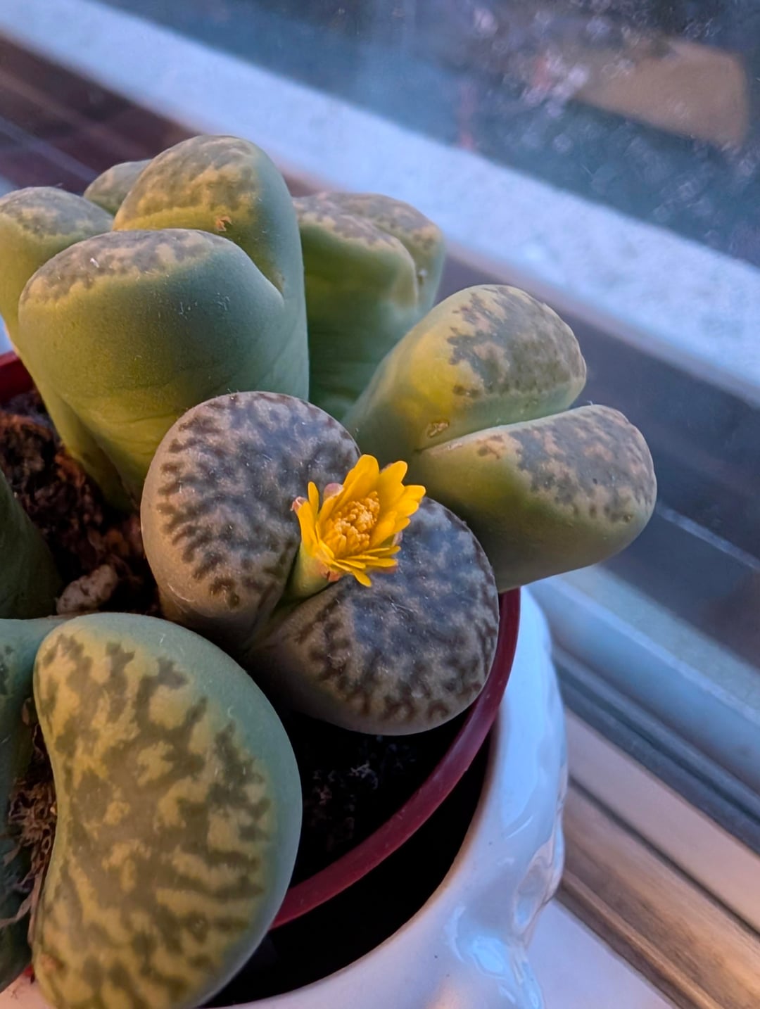 Got them in April this year but I didn't expect such an early bloom. So happy!!! by abracadamanana lithops 2 Comments Winter-Ad7912 1 month ago gorgeous! MissMoows 1 month ago What a great surprise 😀