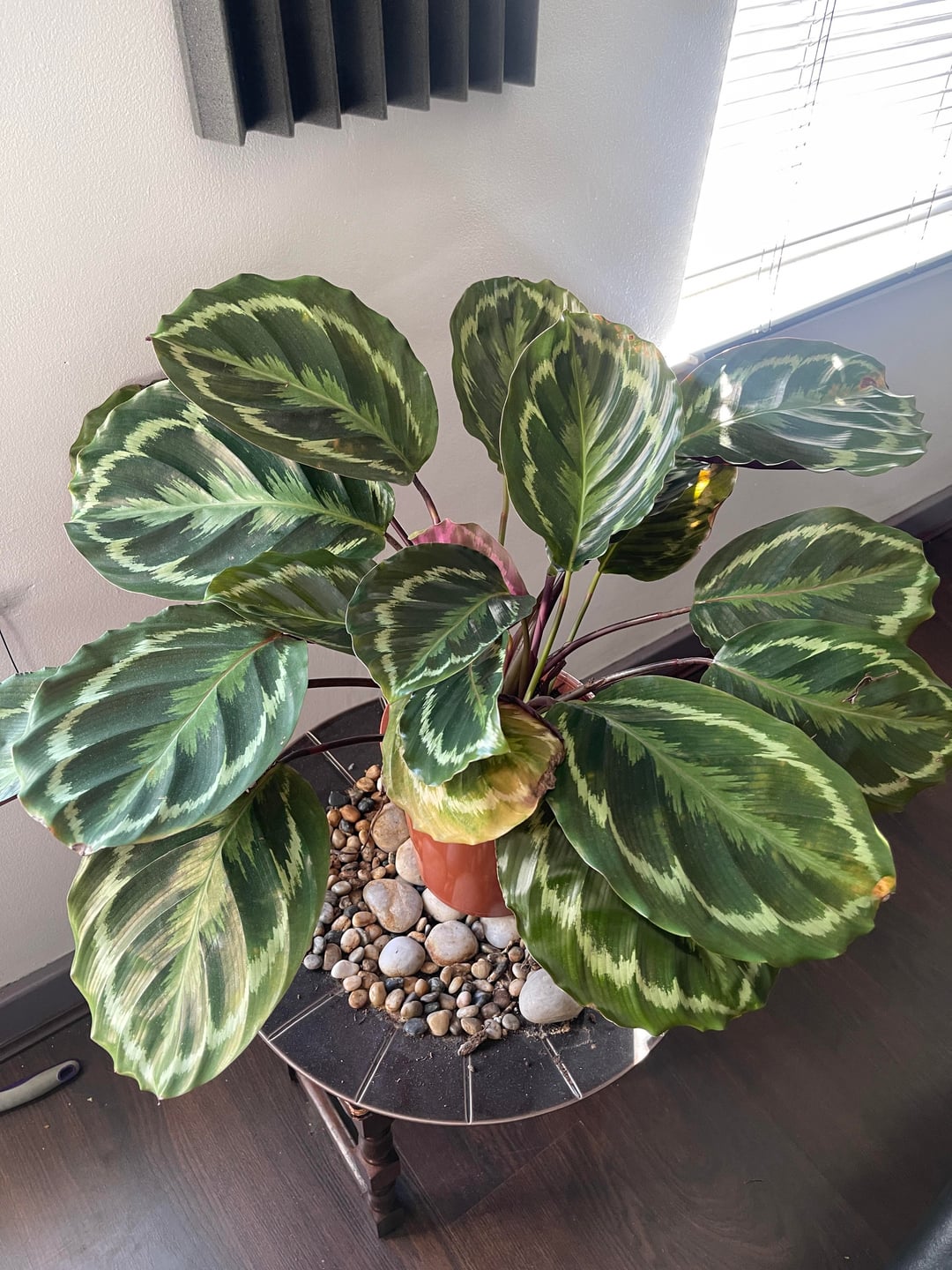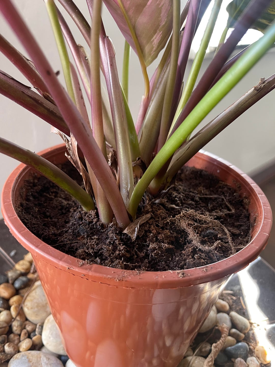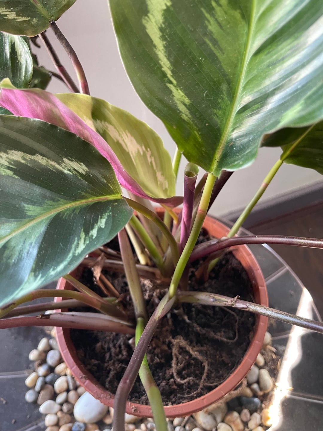 So I’ve had this Calthea for about 6 months now and has grown tremendously but now starting to droop randomly. At first I thought it was the weather change here in the UK. Some show signs of overwatering so now reducing to once a week, I have roots now coming through to the top soil and this is around the time they supposedly go dormant so not ideal for a repotting. My thing is it’s begging to look like the plant can no longer support the weight of the leaves it’s the drooping that bothers me the most but there is also simultaneously new growth. Very confusing so any advice would be appreciated!