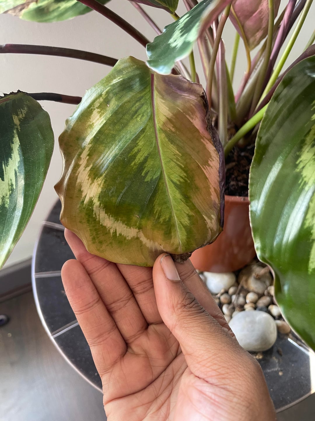 My pink pinstripe was like that… had one leaf left, then I gave the little diva spring water and he’s got 2 new leaves 🤔