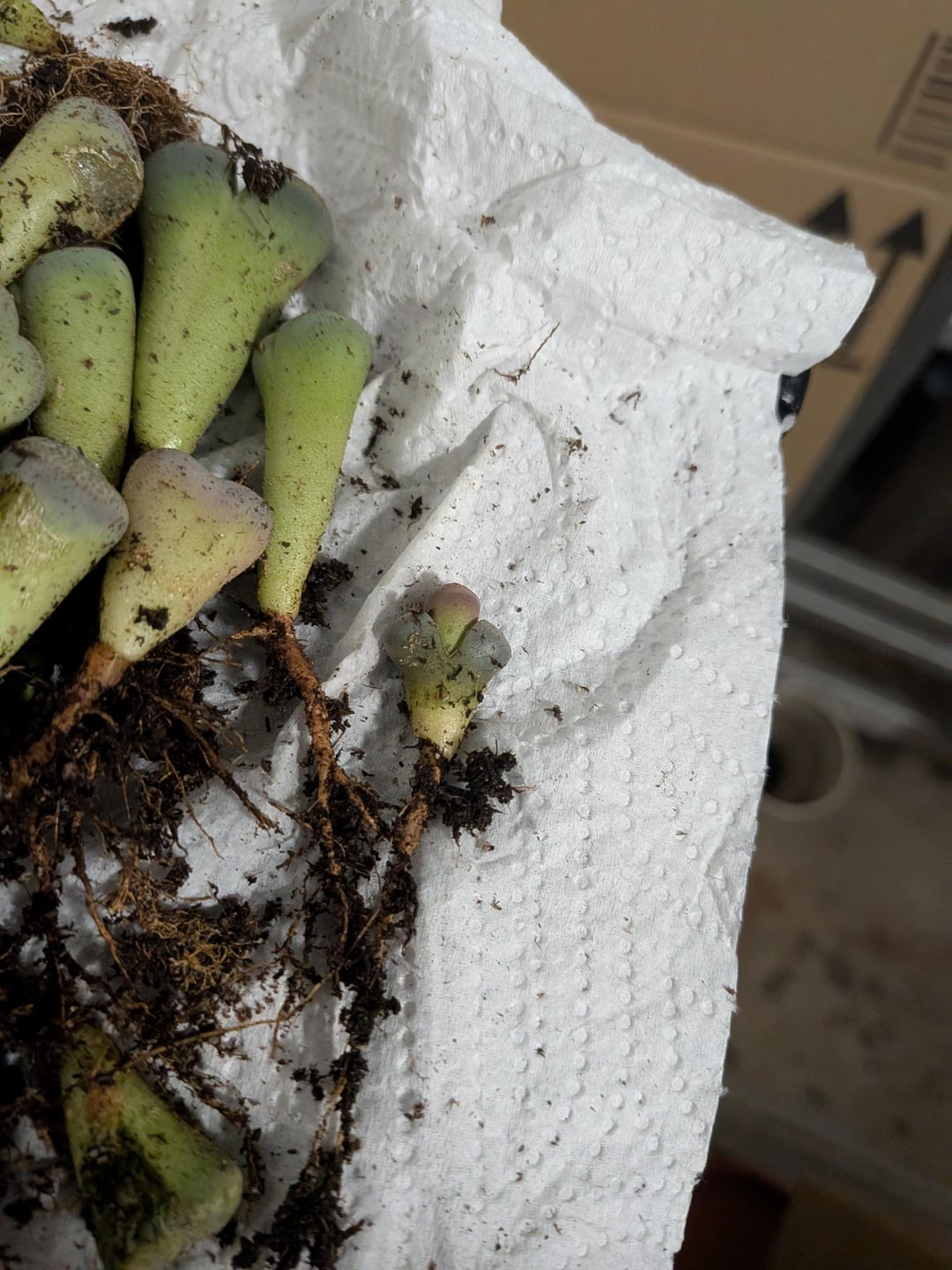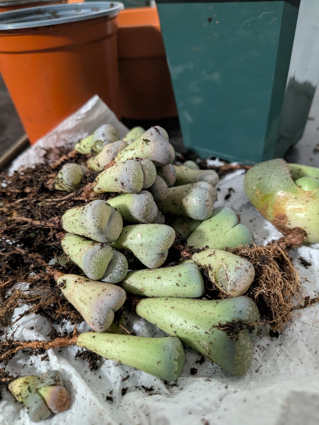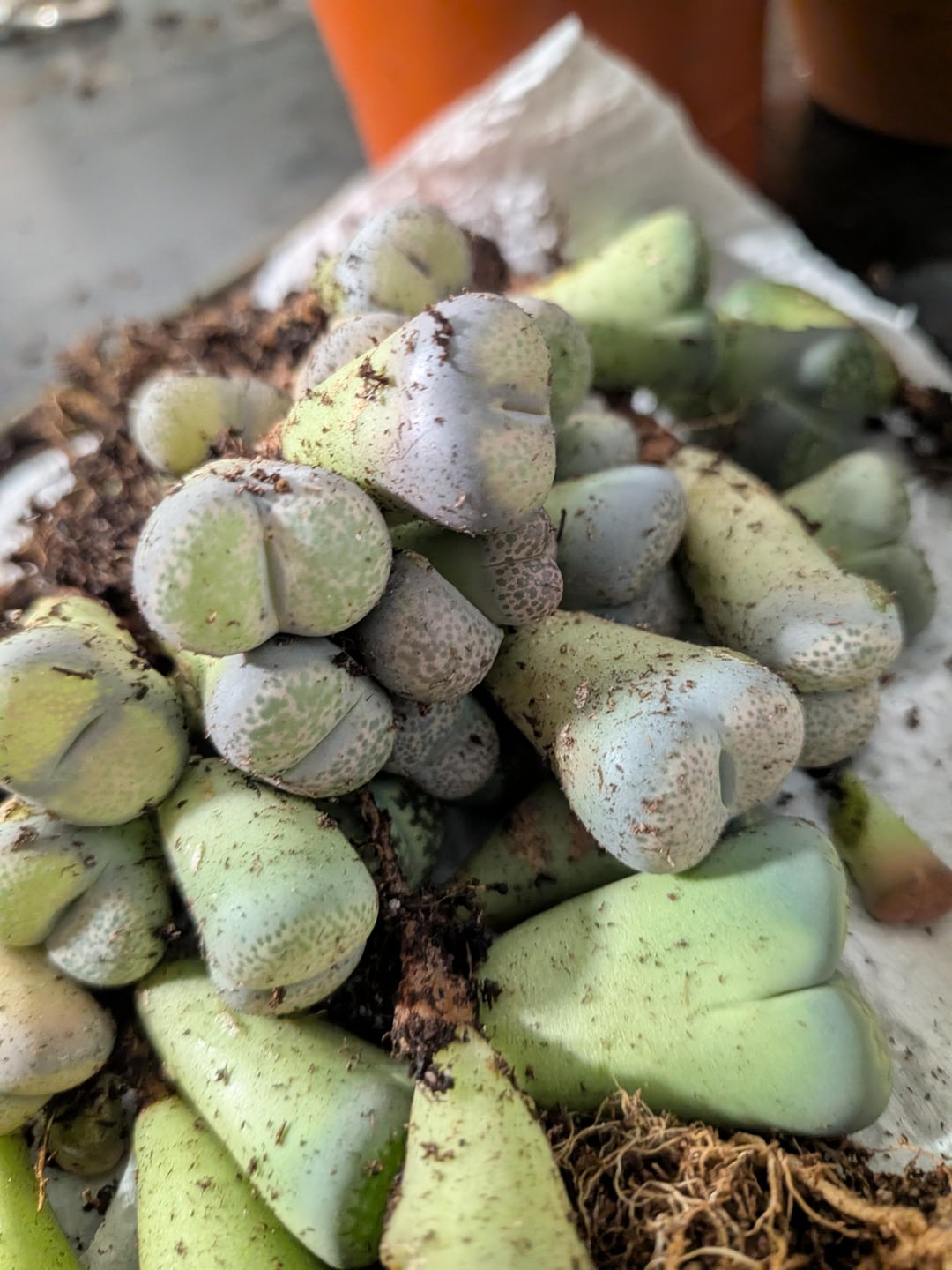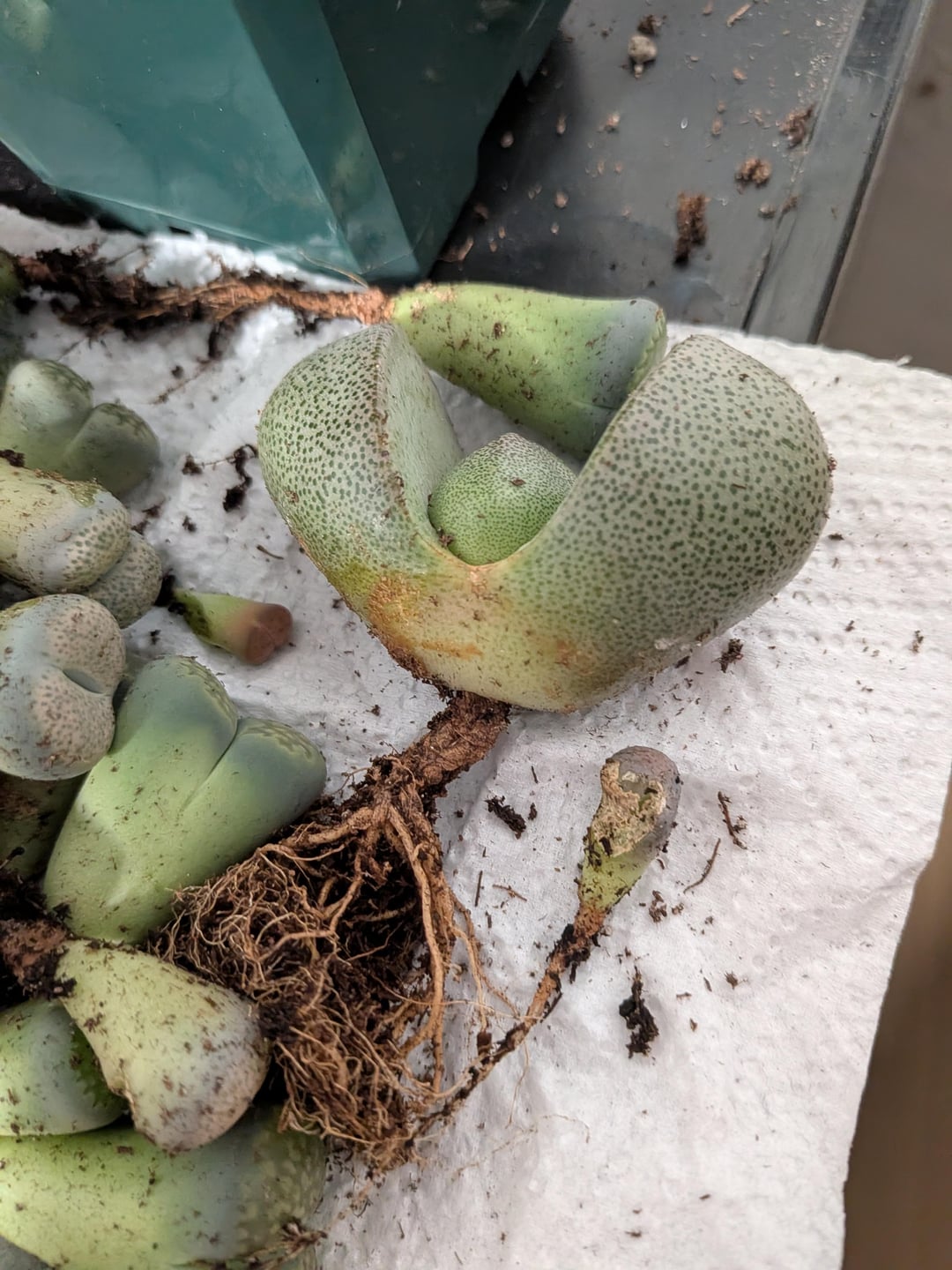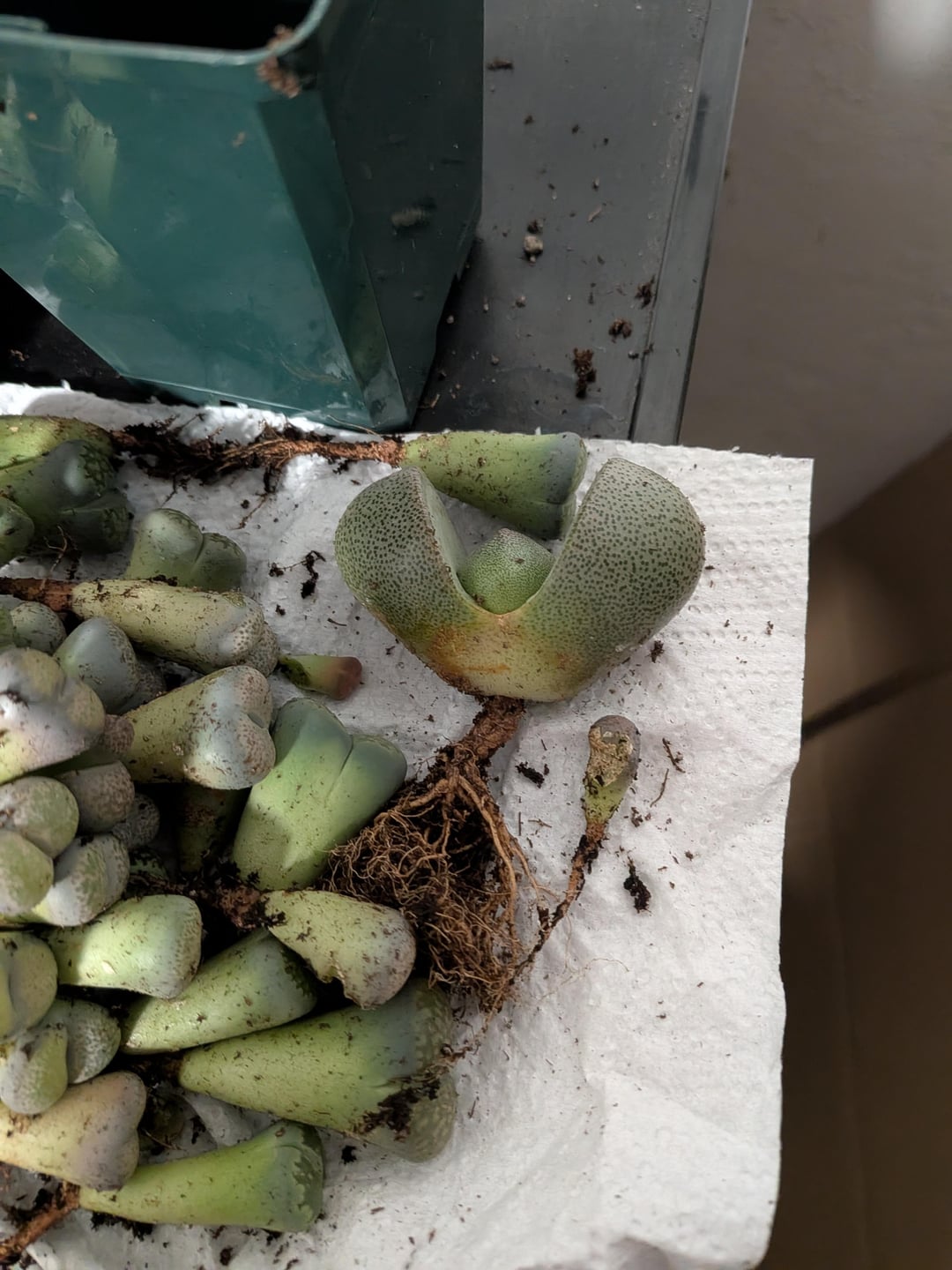 My work has started selling Lithops!!! And had heavily over watered them 😭😭😭 they were in pretty much entirely organic soil too. I spent a good hour carefully separating them, a couple had succumbed to mush but most survied!