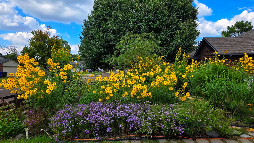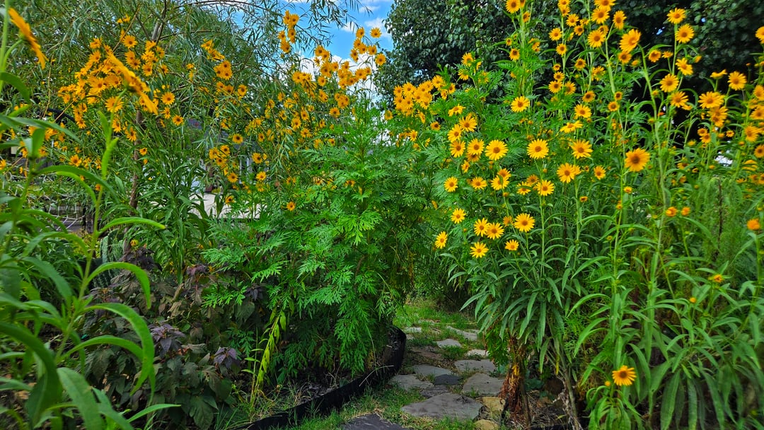 You have to duck under or push through the maximillians and cosmos to walk around the inner circle. Very secret gardeny. The bees are going nuts since the Max's bloomed! by LemonMints native plant gardeningNative Plantsrain gardens 2 Comments NickWitATL 1 week ago Stunning!! iceoocreamoo 1 week ago I appreciate that you keep your ragweed!!! 💪🏻 (that’s ragweed in the center, right)
