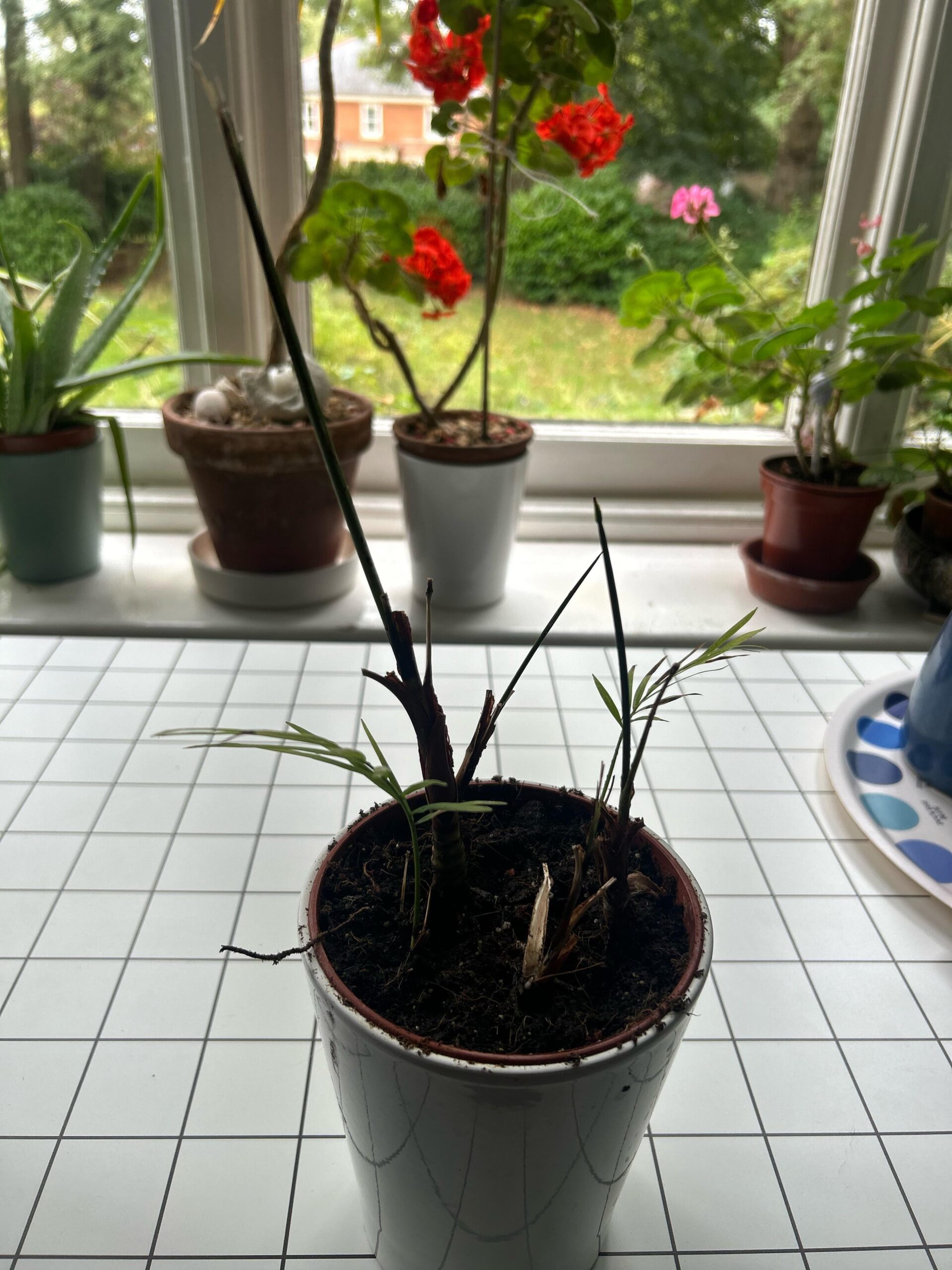 This parlour plum was never 100% happy and was slowly going brown to the extent that over a few years it was basically only a few bits of green. I broke it up at the roots and planted them in new, good draining soil, and have finger crossed. I read advice that it doesn’t like being waterlogged so I have been watering the surface every couple of weeks. It has direct light in the morning and indirect or shaded light rest of the day from about 11am (as per pic)