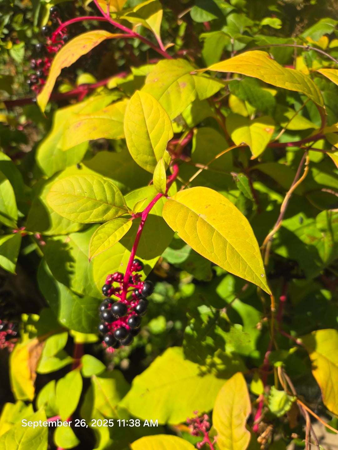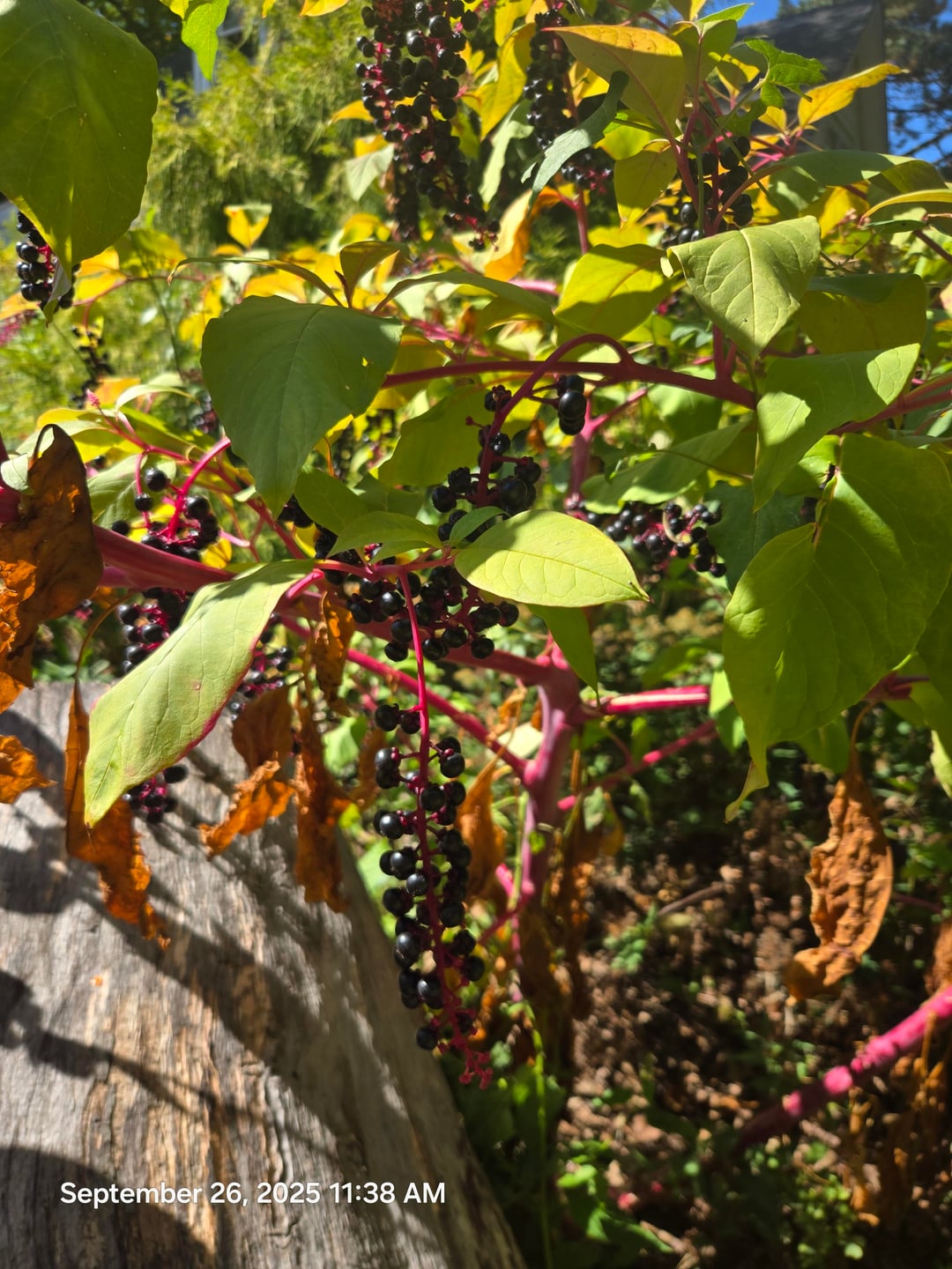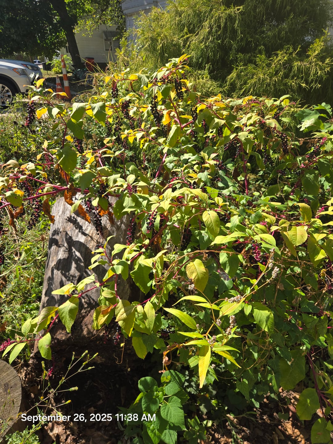 As already answered, Poke…birds eat the berries but most of the plant is toxic to people, dogs or livestock.