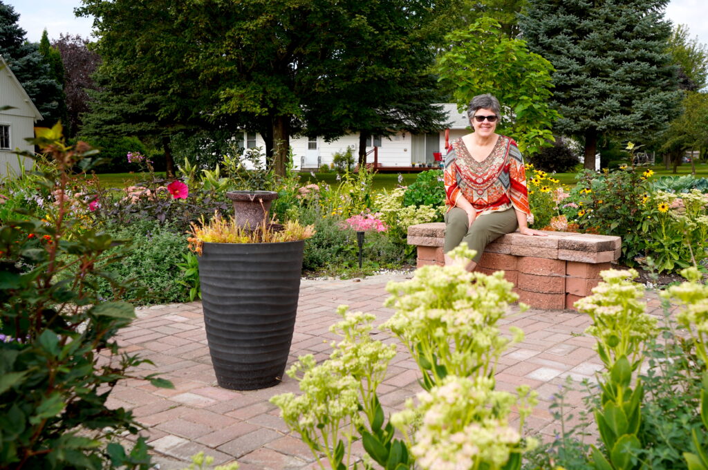 Rev. Mechille Boldt sits on Oasis Garden’s center patio on Wednesday, Sept. 10. PHOTO BY RUBY F. MCALLISTER