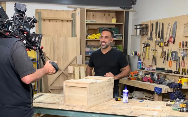 Adam builds a sleek Japanese-style toolbox using recycled timber on Better Homes and Gardens (image – Seven)