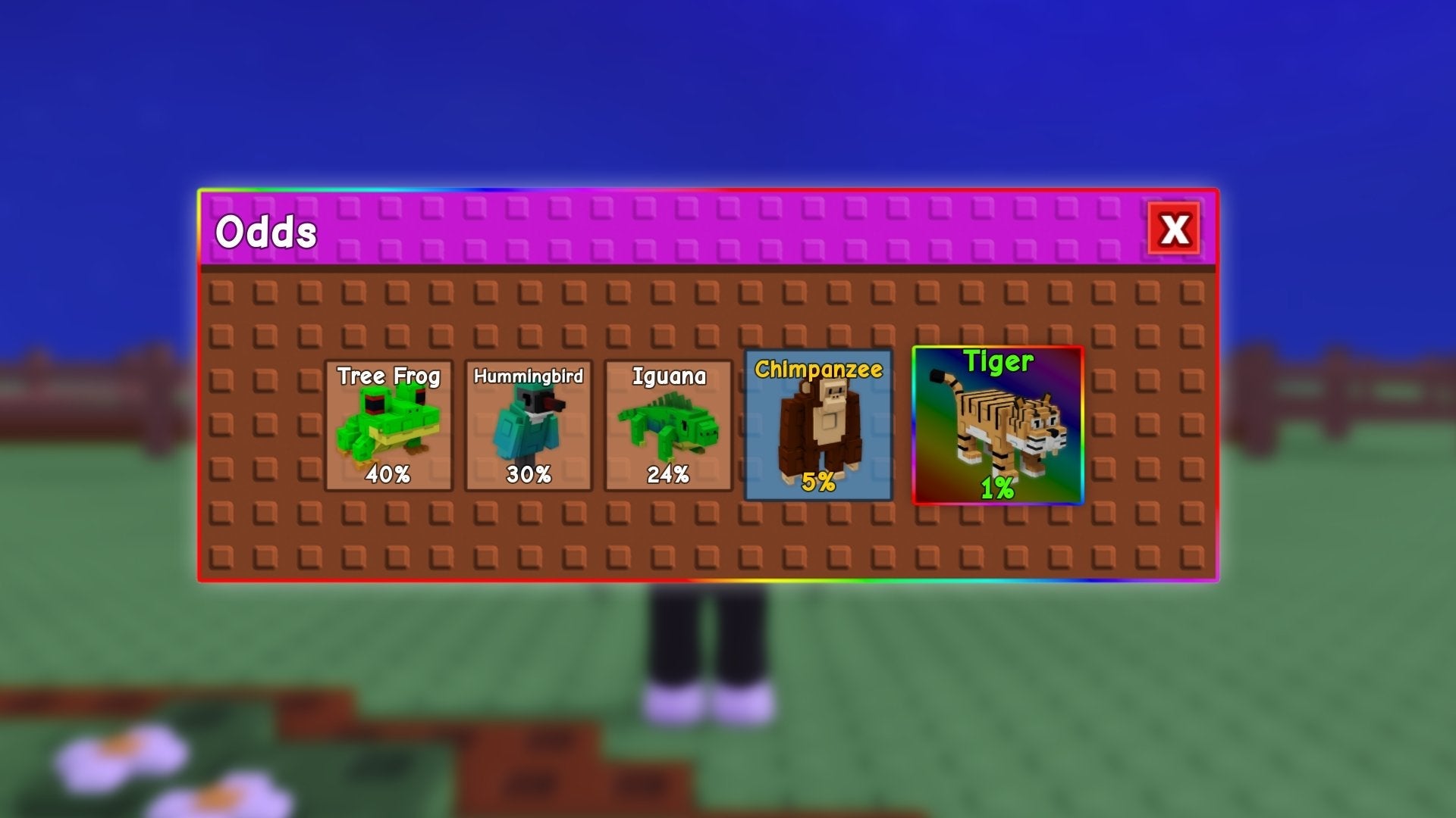 The Tiger is a pet that’s exclusive to the Jungle Egg in Grow a Garden. It’s also a Divine pet with a 1% chance of appearing from this egg. This makes it the least likely pet you’ll get out of this egg. With the Tree Frog being the most likely.