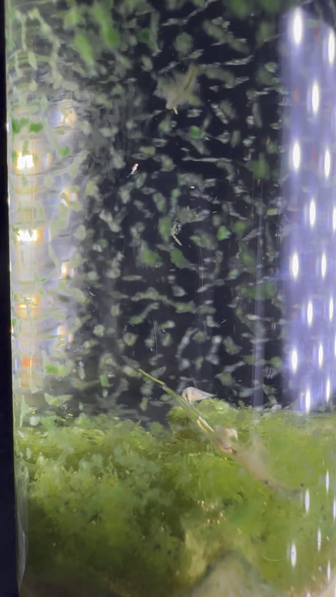 In other news a bunch of shrimp have been living underneath the green foliage. Didn’t know they buried themselves in it thought they were mainly cultivating. It turns out the nesting in it too. I bet you they’re laying eggs down there as well as it seems to be an endless supply of tiny little broodlings.