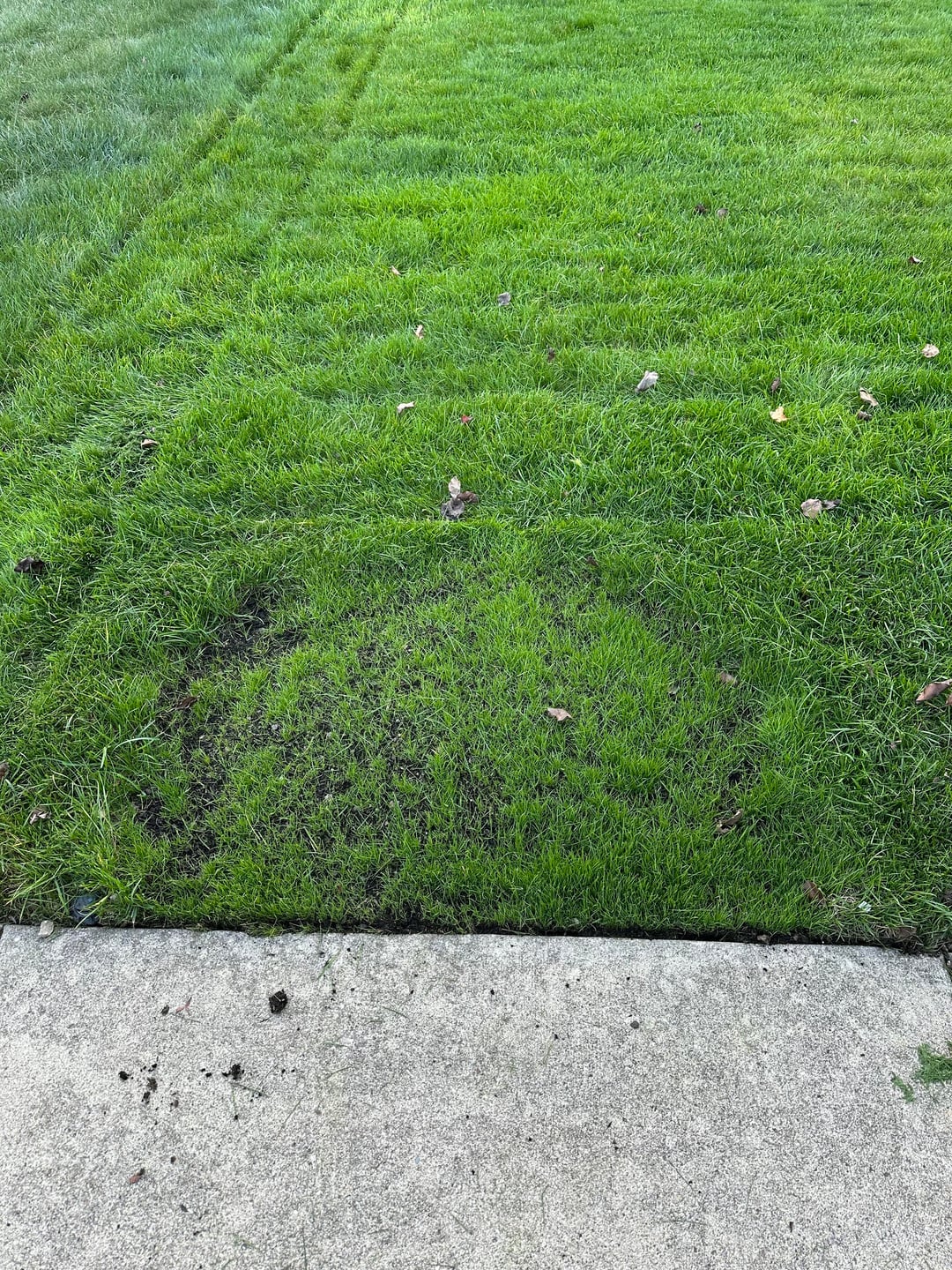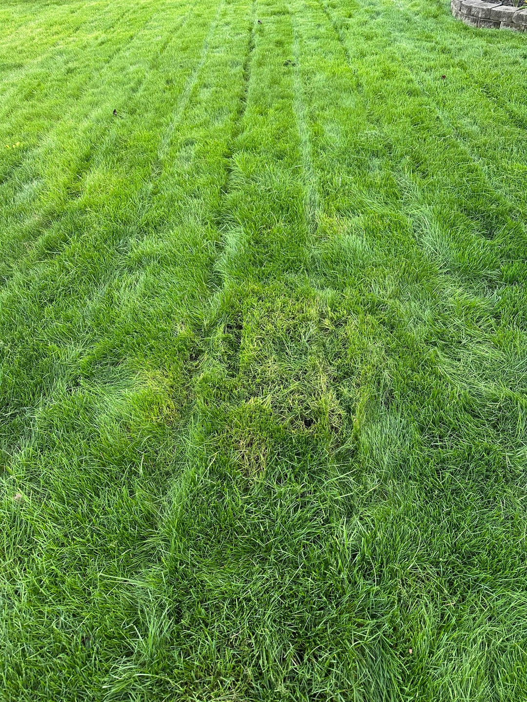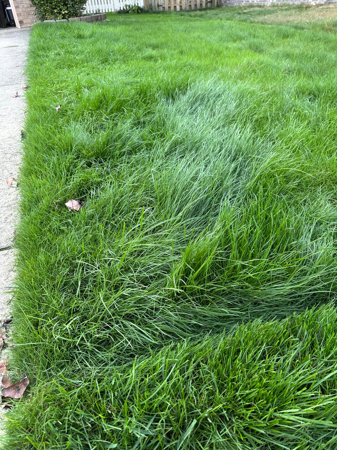 There are still some small spots that I need to get rid of clumping fescue, but overall it’s a lot better. In the last photo you can see where I took out a chunk of Bermuda that stuck out. Local lawn care company aerated twice, seeded, and put down starter fertilizer. They used their own mix of rye and kbg.