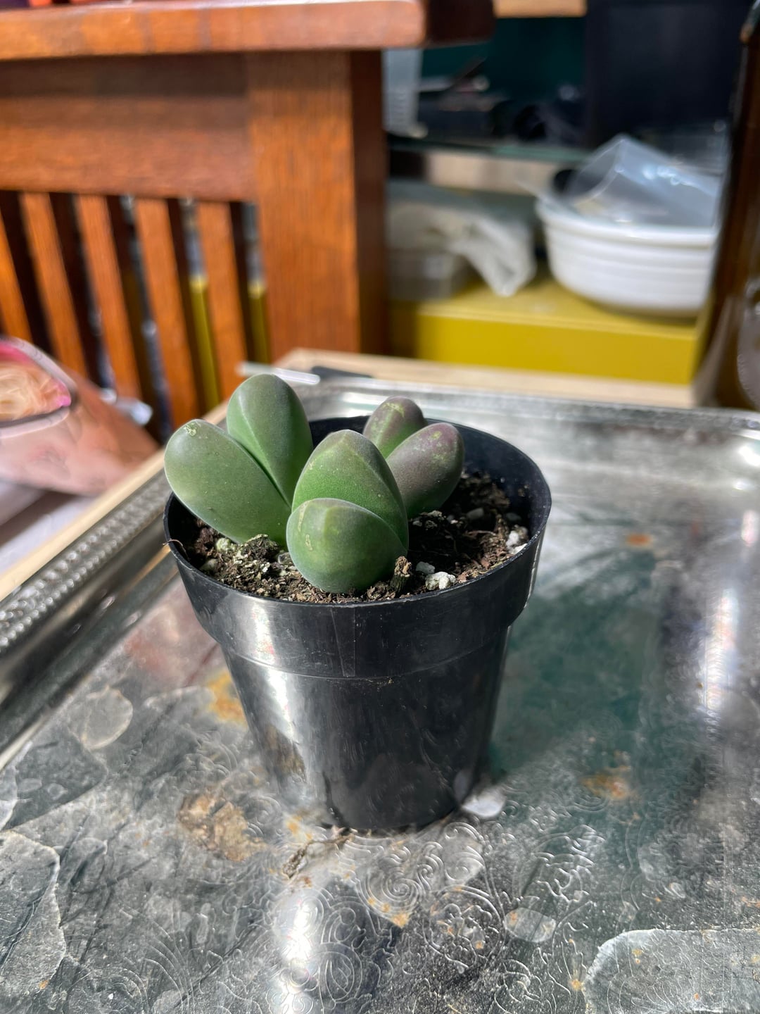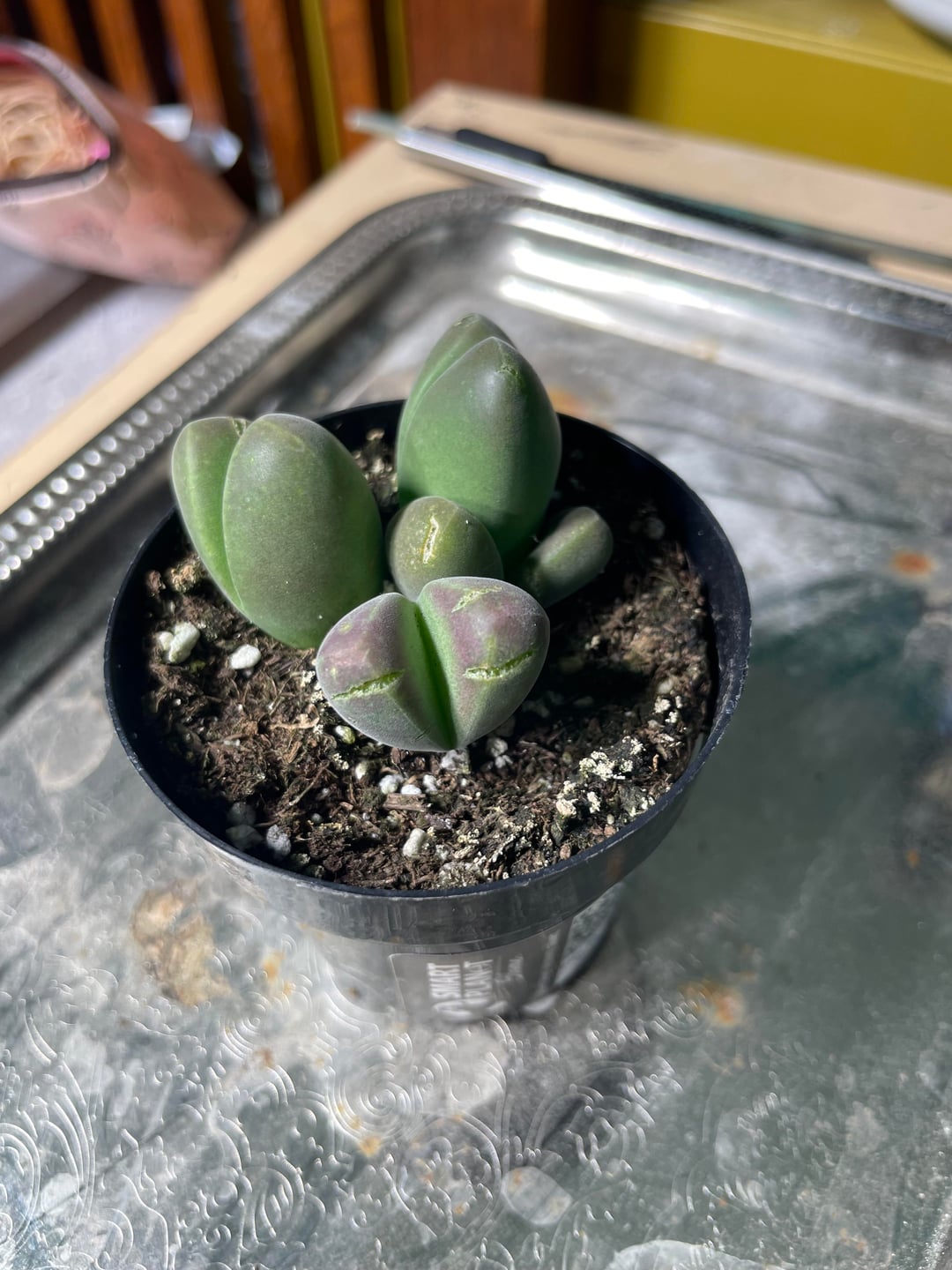 Hi all, I found this plant amongst some lithops today. It is mislabeled so I’m curious, what’s the name for this little guy? I plan to move it to a far grittier soil mix as soon as I can. I wanted to ensure I wouldn’t stress the plant depending on its cycle. The leaves are firm but have some squish, the set split open the widest are very squishy. Is this due to overwatering? Thank you in advance 🙏💚