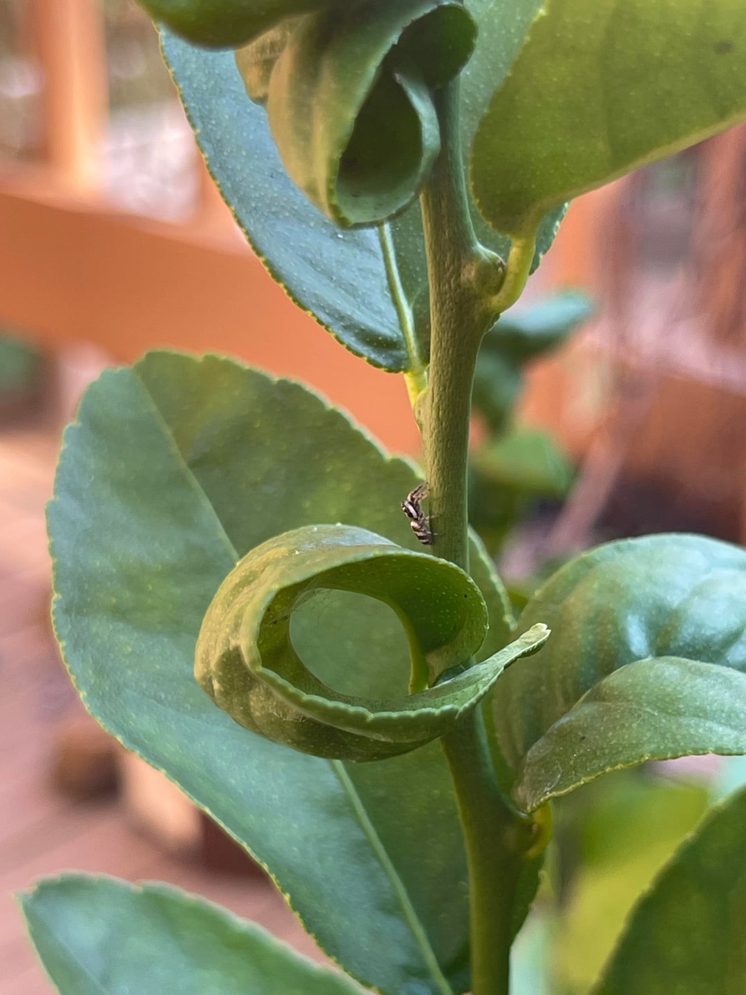 It’s a key lime tree in a planter that lives outdoors in the warmer months and inside during the winter (Chicagoland). This season most of the new growth had these weird curled leaves— I chalked it up to humidity issues— but then I saw a couple new friends/foes(?), insect husks, and a tiny bit of webbing. Not sure if they are all related or separate issues.
