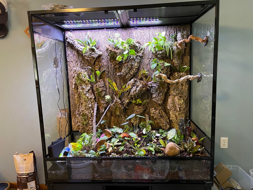 I would appreciate any constructive criticism and feedback. I want it to be as beautiful as possible. It will have dart frogs. The dimensions are 4’x4’x2’.