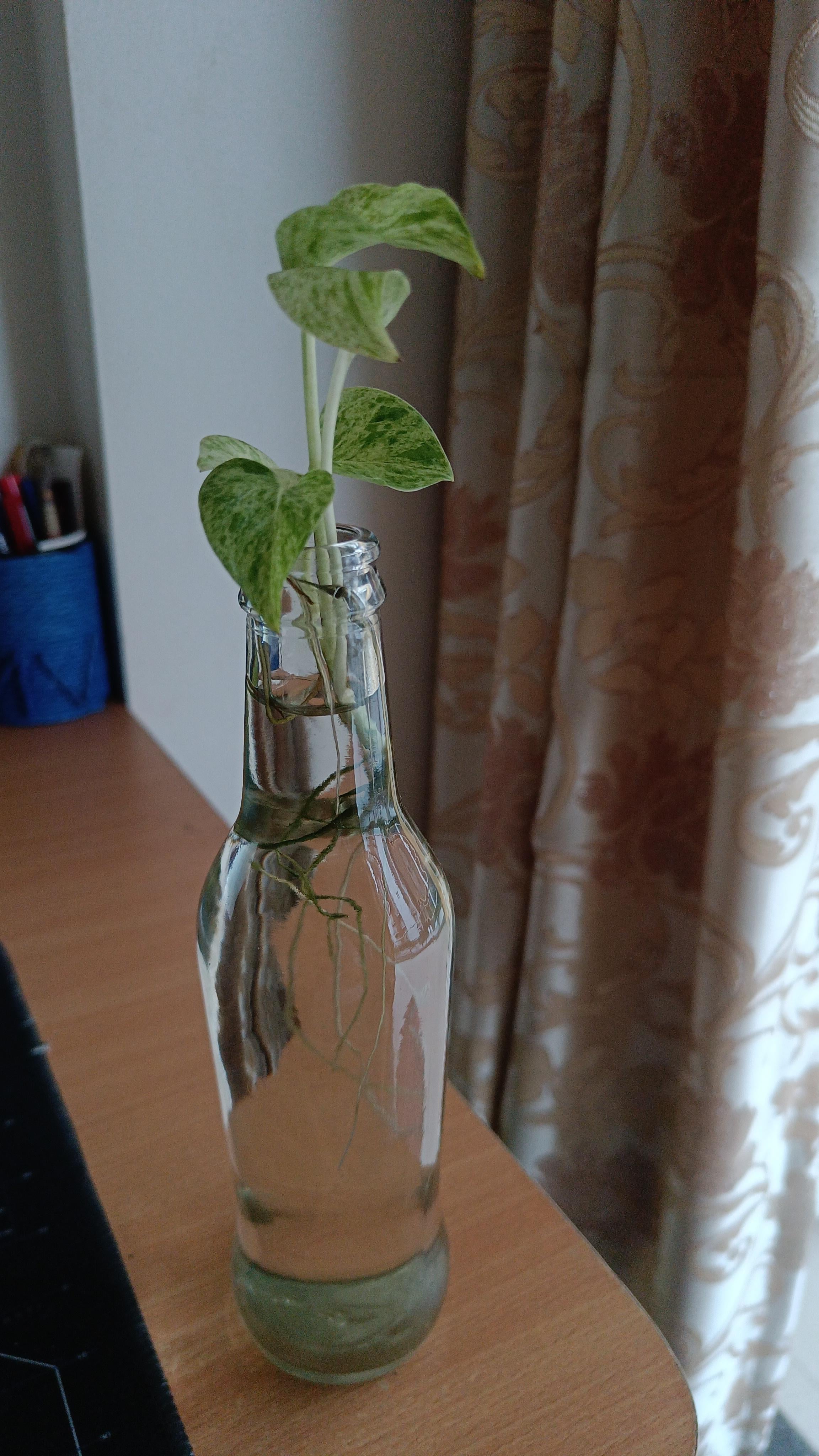 Planted this marble queen baby pothos a month or two back. Grew a new leaf immediately, but I don't see any new growth on her. She won't grow either. It's a bit disheartening.