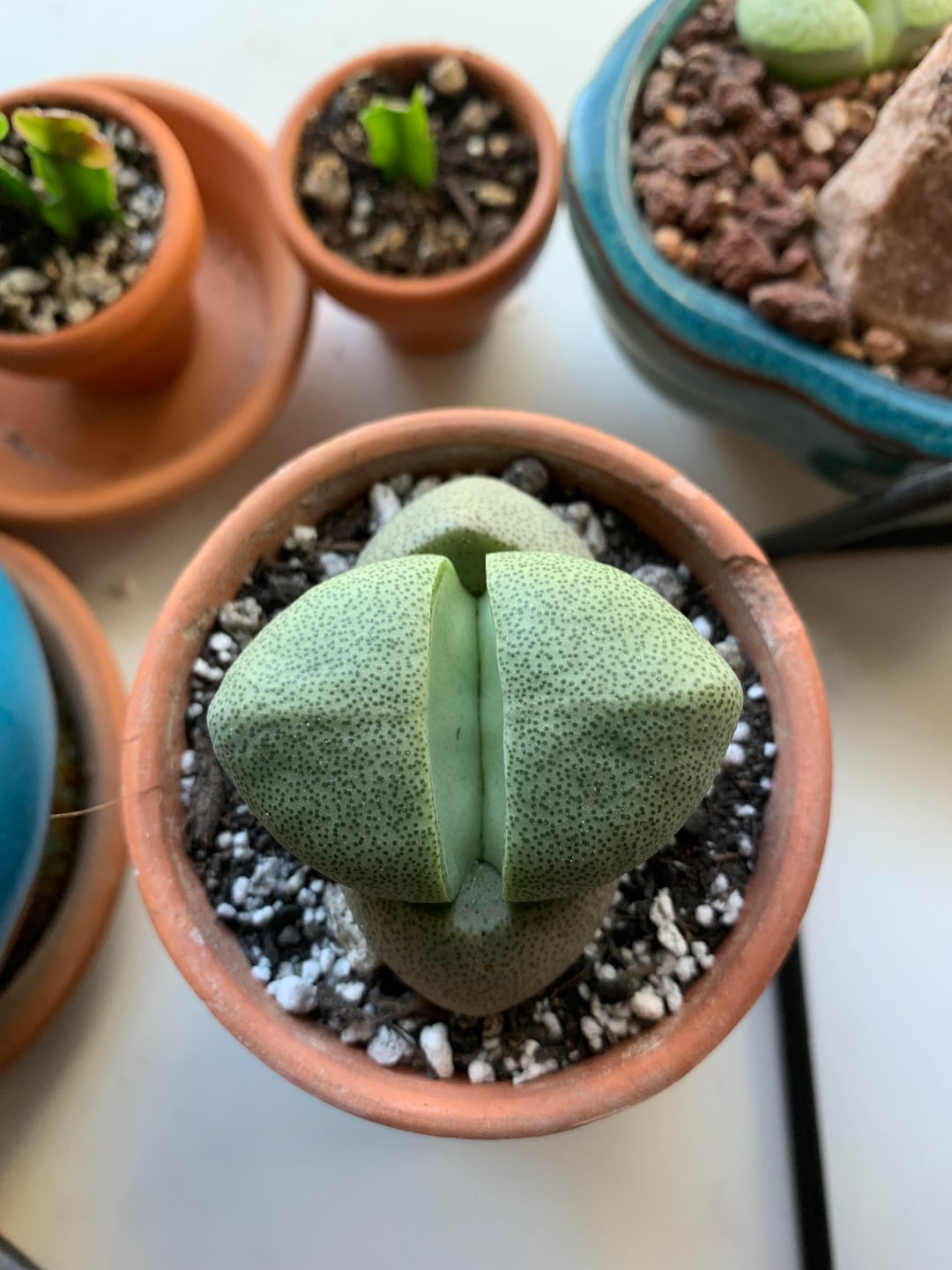 Newbie here… got this (fairly fat) split rock about a month ago. Took it out of its organic only nursery soil and repotted in well draining soil as seen (it’s super dry AZ climate, so recommendations were to add a little more organics than in other climates- soil measures on the very dry side of dry). Haven’t dared to look at it or even think the word wter around it (read a lot about how they are very fuzzy with even just thoughts about hydration). The outer leaves are now getting a little soft and the inside of the split is changing from very smooth to a-little not-that-smooth-any-more. Here’s my question: is that the kind of “wrinkly” people are mentioning when it’s time to *water? Or do I just leave it? I just don’t have an idea how a “wrinkly and thirsty” split rock looks like. Any help is appreciated. Please be kind. Thank you