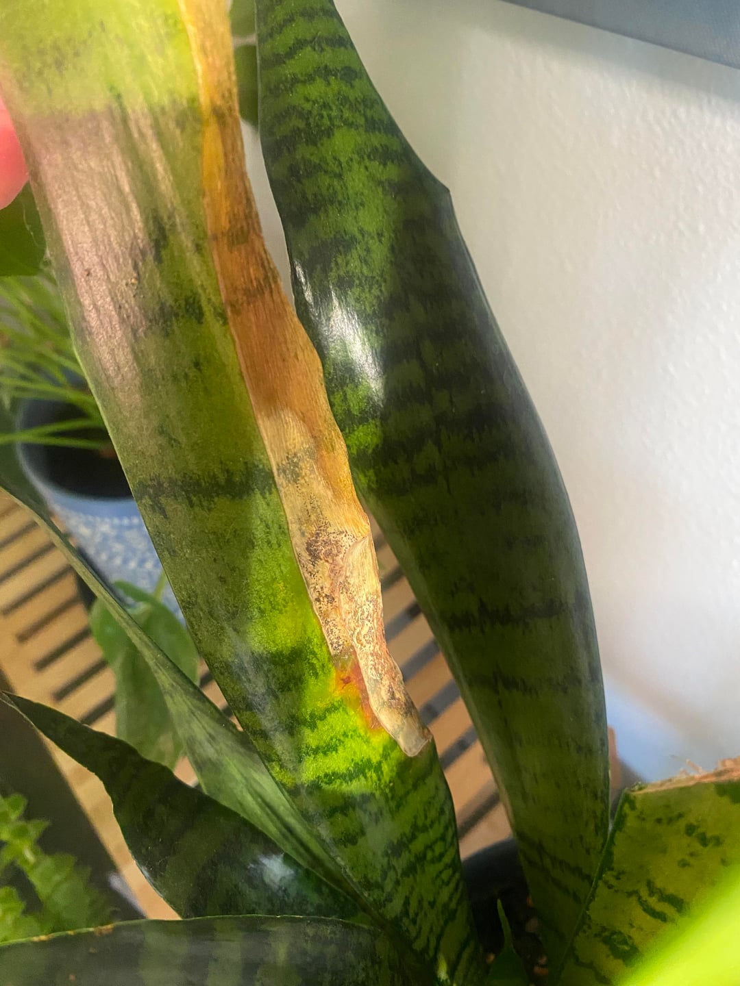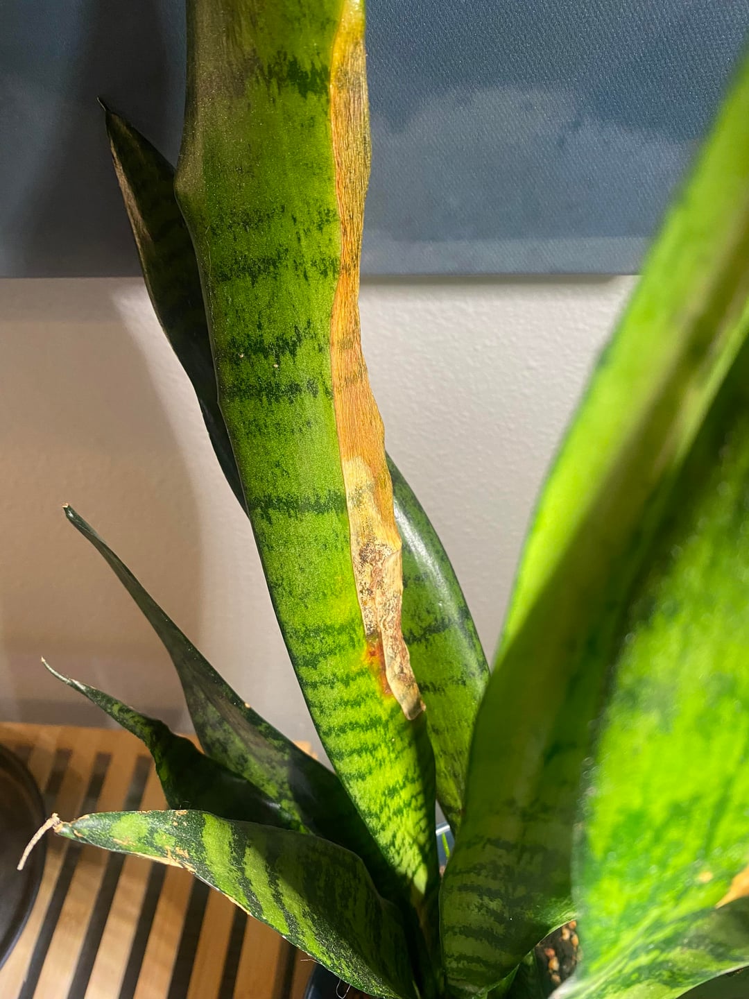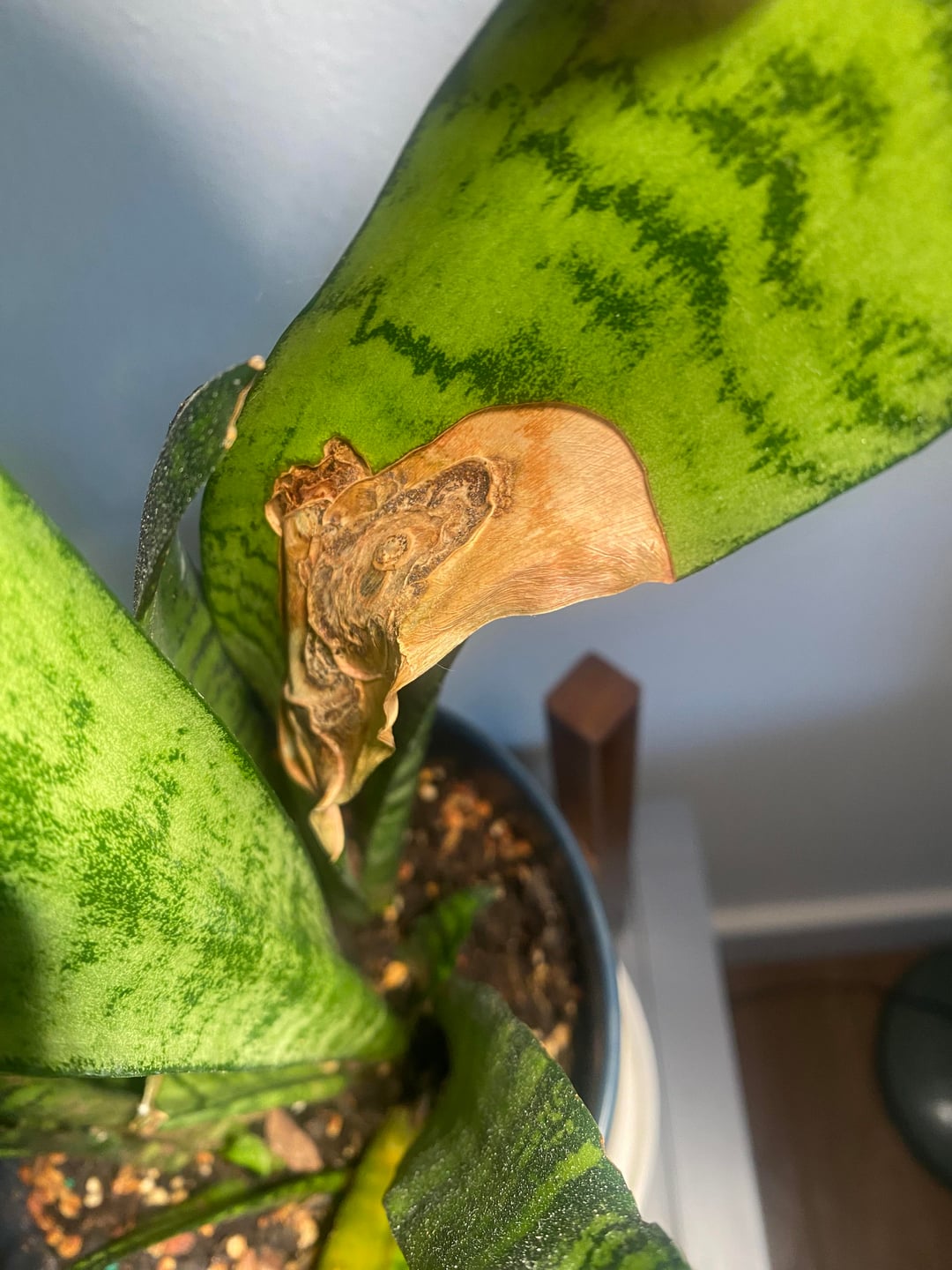 Snake plant keeps developing these brown spots. Eventually the the leaf flops over and I have to cut it (usually occurs after watering). I don’t water often (every 1-2 months) but I do think the soil is a bit too dense. The plant also doesn’t get much natural sunlight (in a bright room but far from the window) but is under a grow light 12-14 hours a day. Anyone have any ideas?