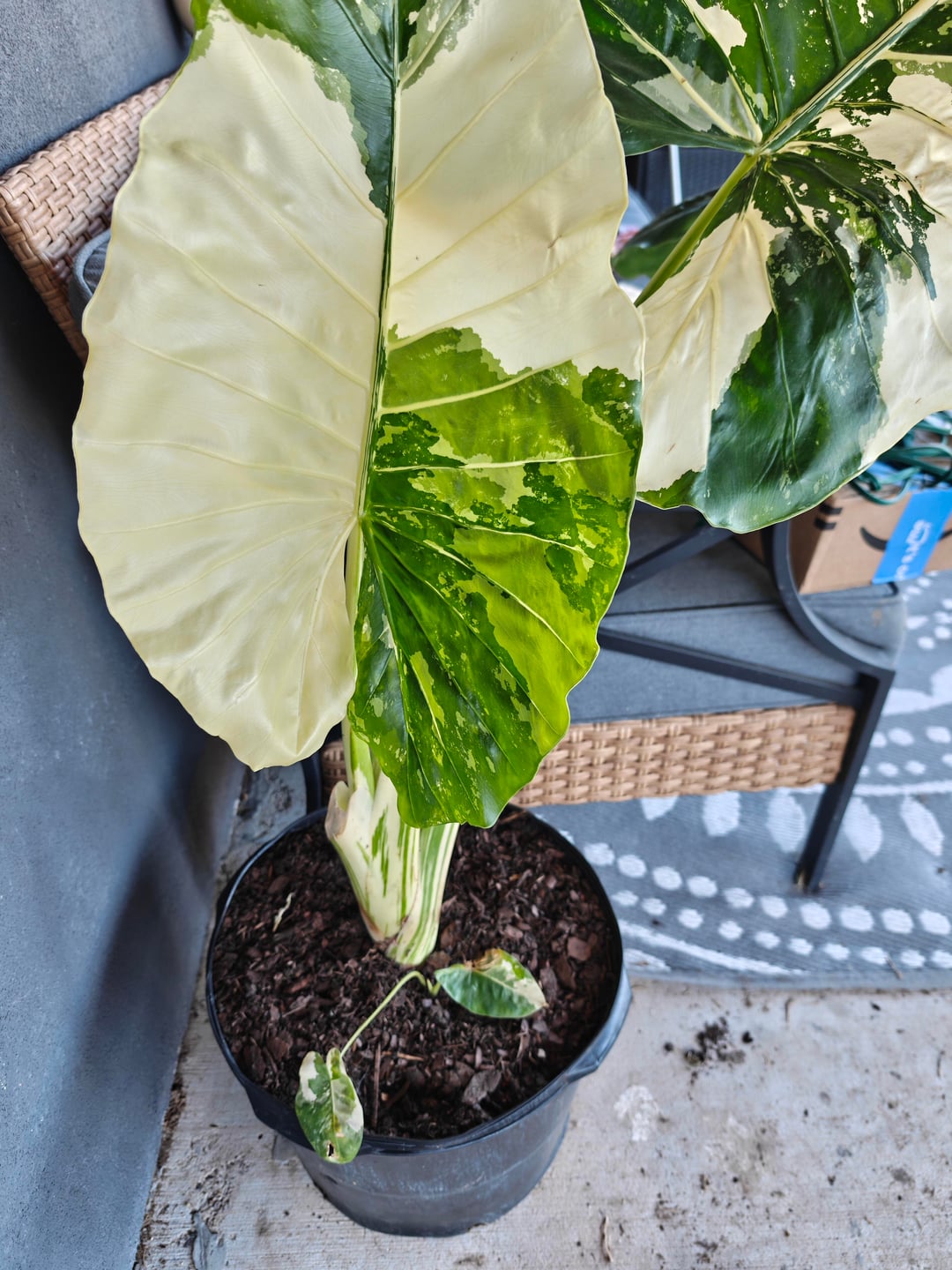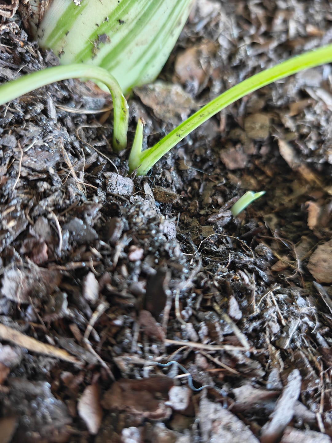 I just picked up this gorgeous variegated plant a few days ago (my first one like this!) and today while I was watering it, I noticed something super exciting, there are tiny little sprouts pushing up from the soil! 😍