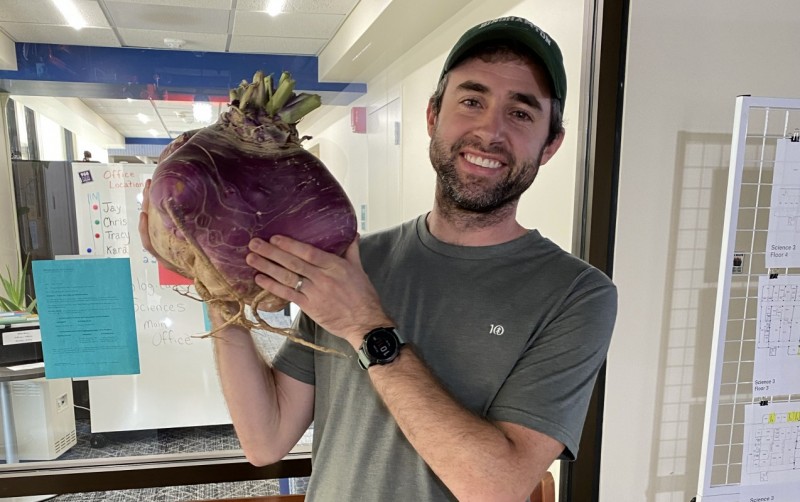 At this size, the turnip is probably a bit tough for stew. Fun fact: before pumpkins made their way to the British Isles, jack o’ lanterns used to be carved from turnips — although Palmer admits that he doesn’t have the artistic skills to pull this off. If you do, you’re welcome to try — after the official weighing, of course.