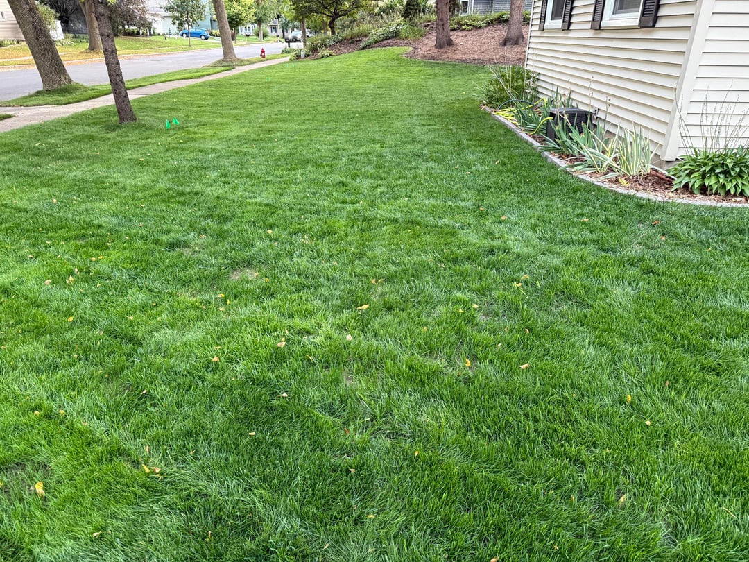 Still a few bare spots that didn't germinate where the topsoil was dropped and leveled out, and a few grassy weeds popped up.