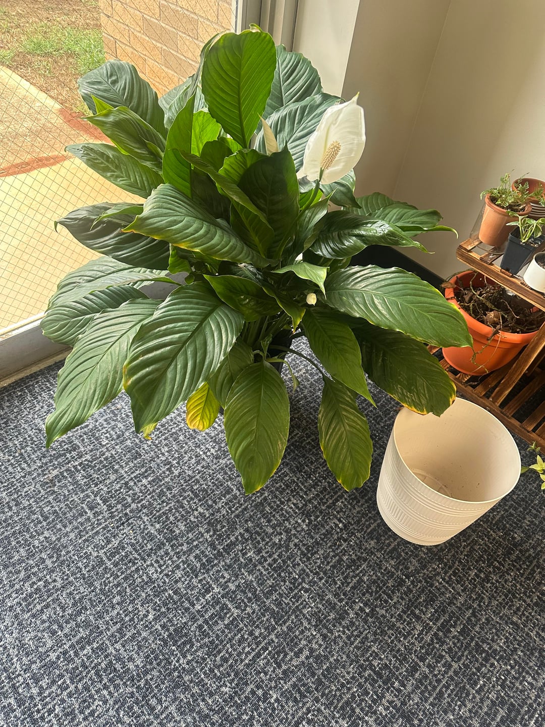 She’s beside a window door that gets direct light for around one to two hours a day, then indirect but very bright light for the rest of day- sunlight hits like an inch away from the door.