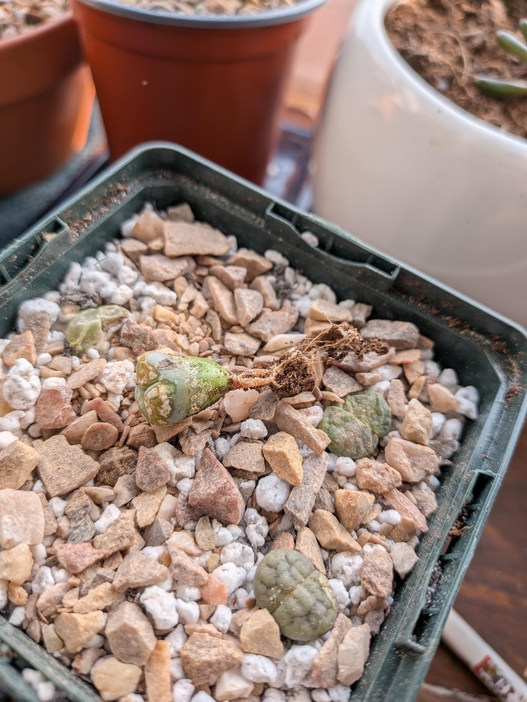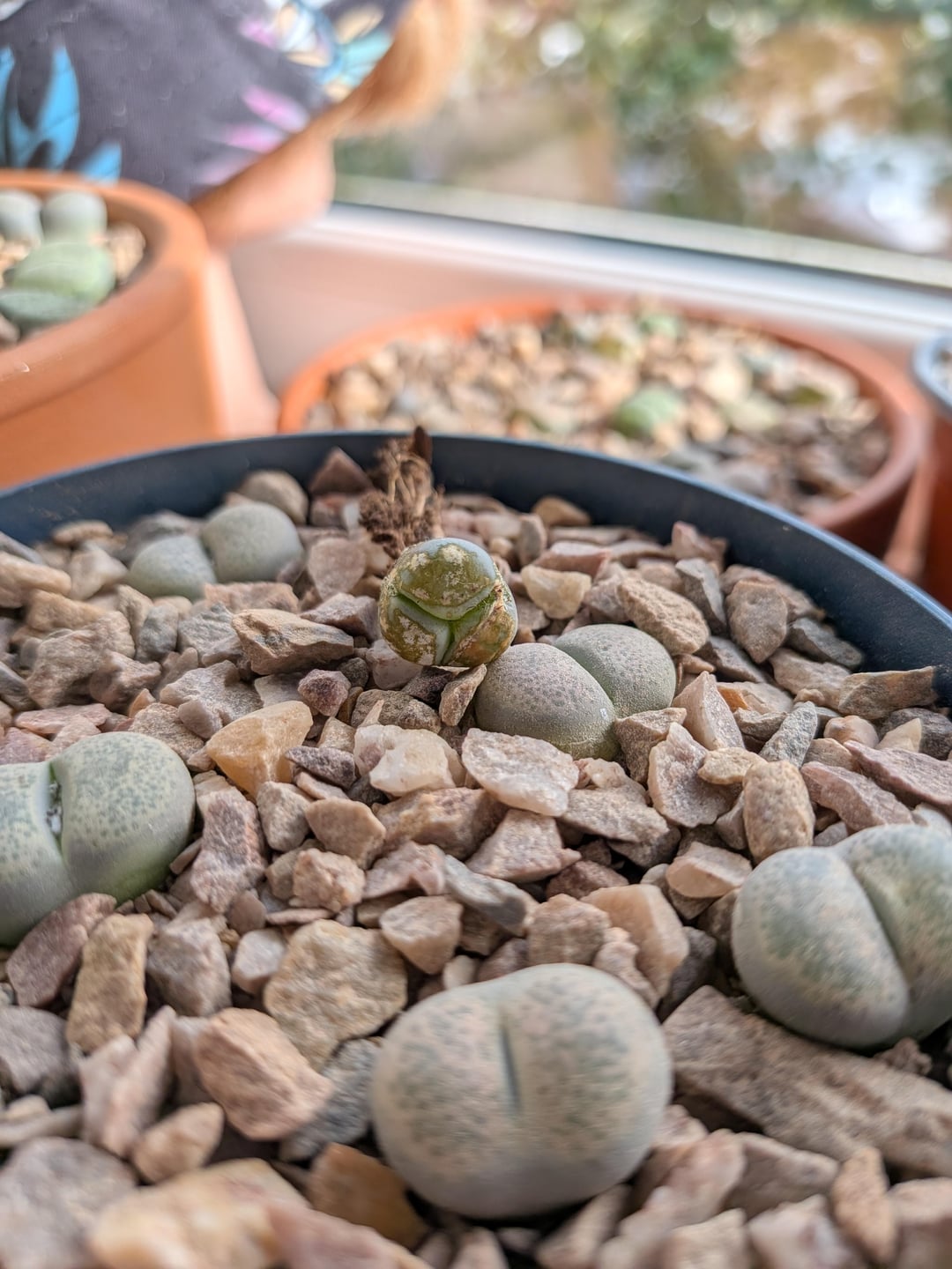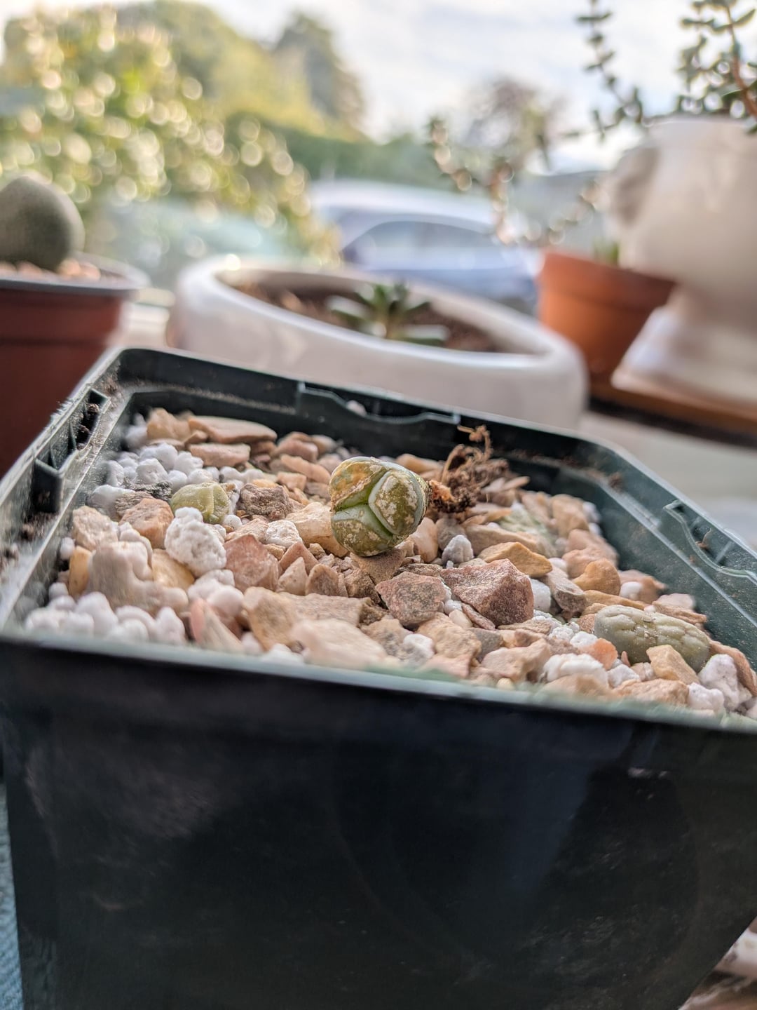 Saw this at work after I bullied them into letting me repot their lithops stock, is this guy a proper lil mutant?? by No_Imagination7813 lithops 1 Comment Fluffy-lotus606 1 month ago That might be a conophytum trident instead of a lithops