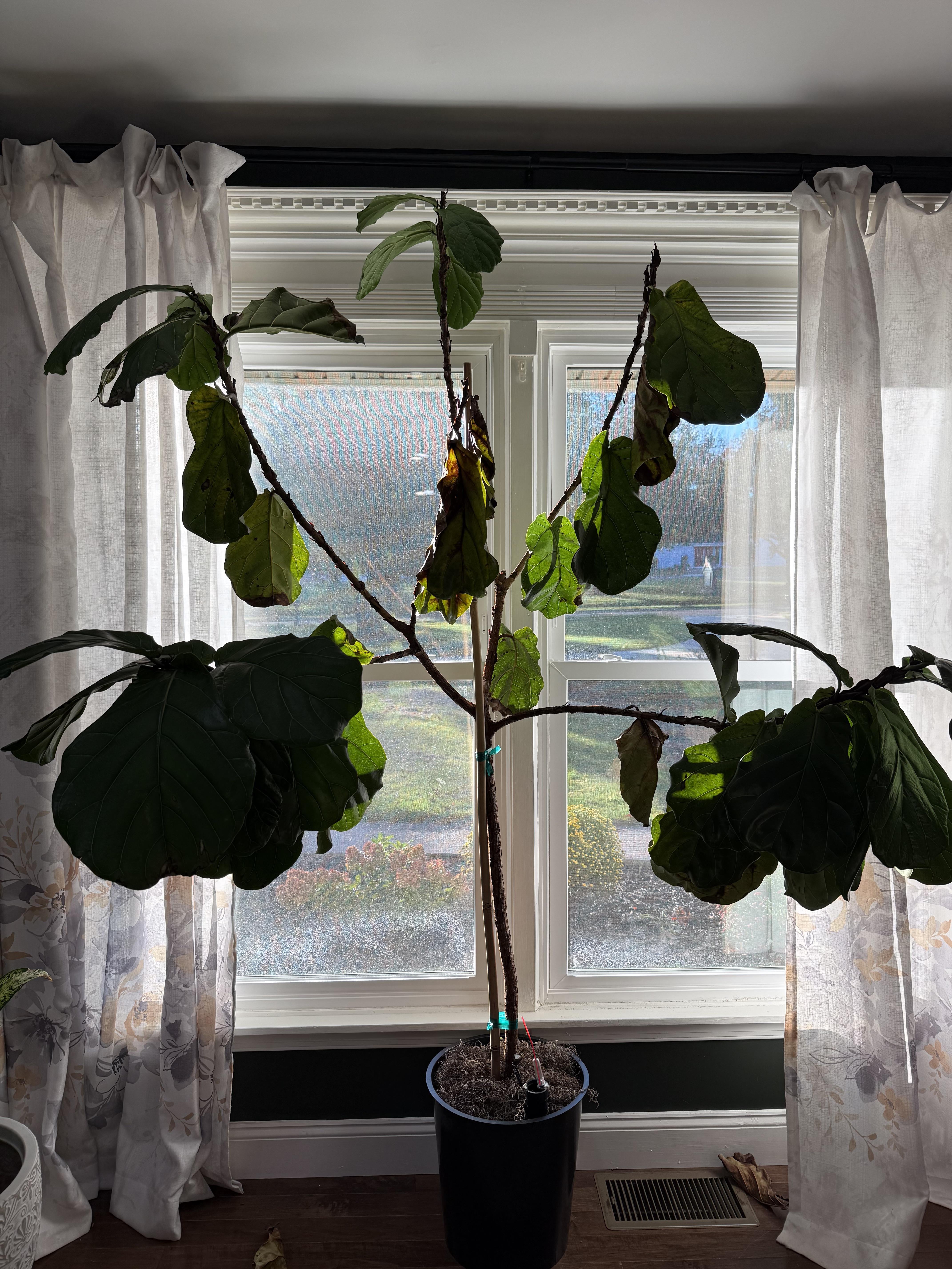 I rescued this fiddle from my office building when they were moving and getting rid of a ton of plants. It was pruned heavily before I got it, likely so it could be surrounded by smaller plants. I've had it for 4 months and it has definitely lost leaves since bringing it home. It dropped a ton in the first 2 months and has put out a few new leaves, but not enough to compensate for the lost leaves.