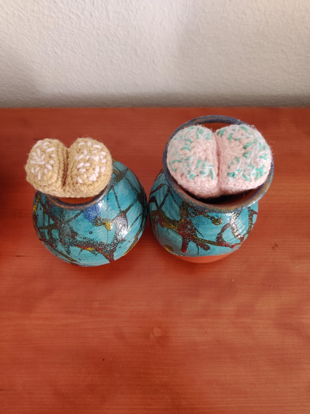 They are adorable. And those vases are amazing. For watering, make sure you have absolutely no drainage holes in the bottom and water daily 😉