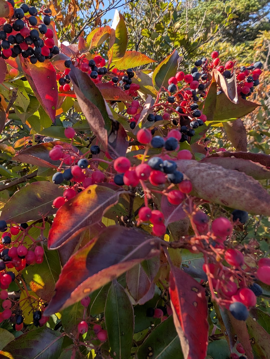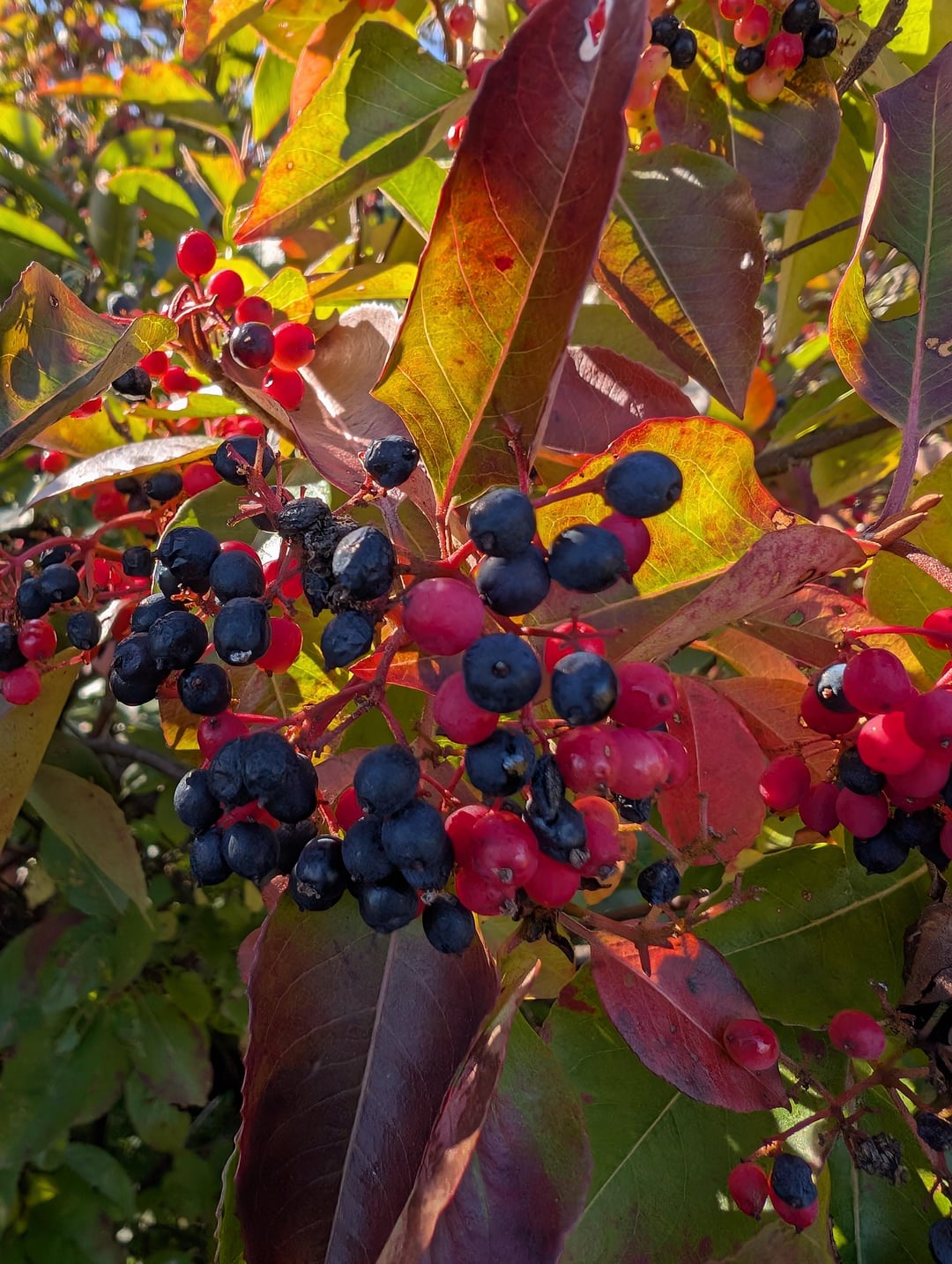 Personally, Id wait until the fruits are black and kind of shriveled up like a raisin. Or u can pick the black ones and just process them into a jam (id remove the seeds). I just eat the shriveled ones and spit the seed out cause its a pretty big seed in comparison to the berry flesh. The red ones arent ripe and wont taste good.