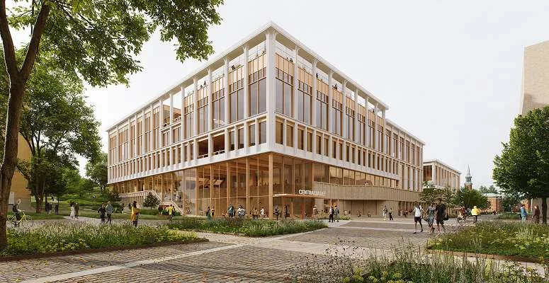 Timber is also used in interior partitions, ceiling elements, and insulation where possible, lowering embodied carbon. Designs for façades feature recycled bricks, and timber elements are designed for disassembly and reuse, creating a resilient, long-lasting building.