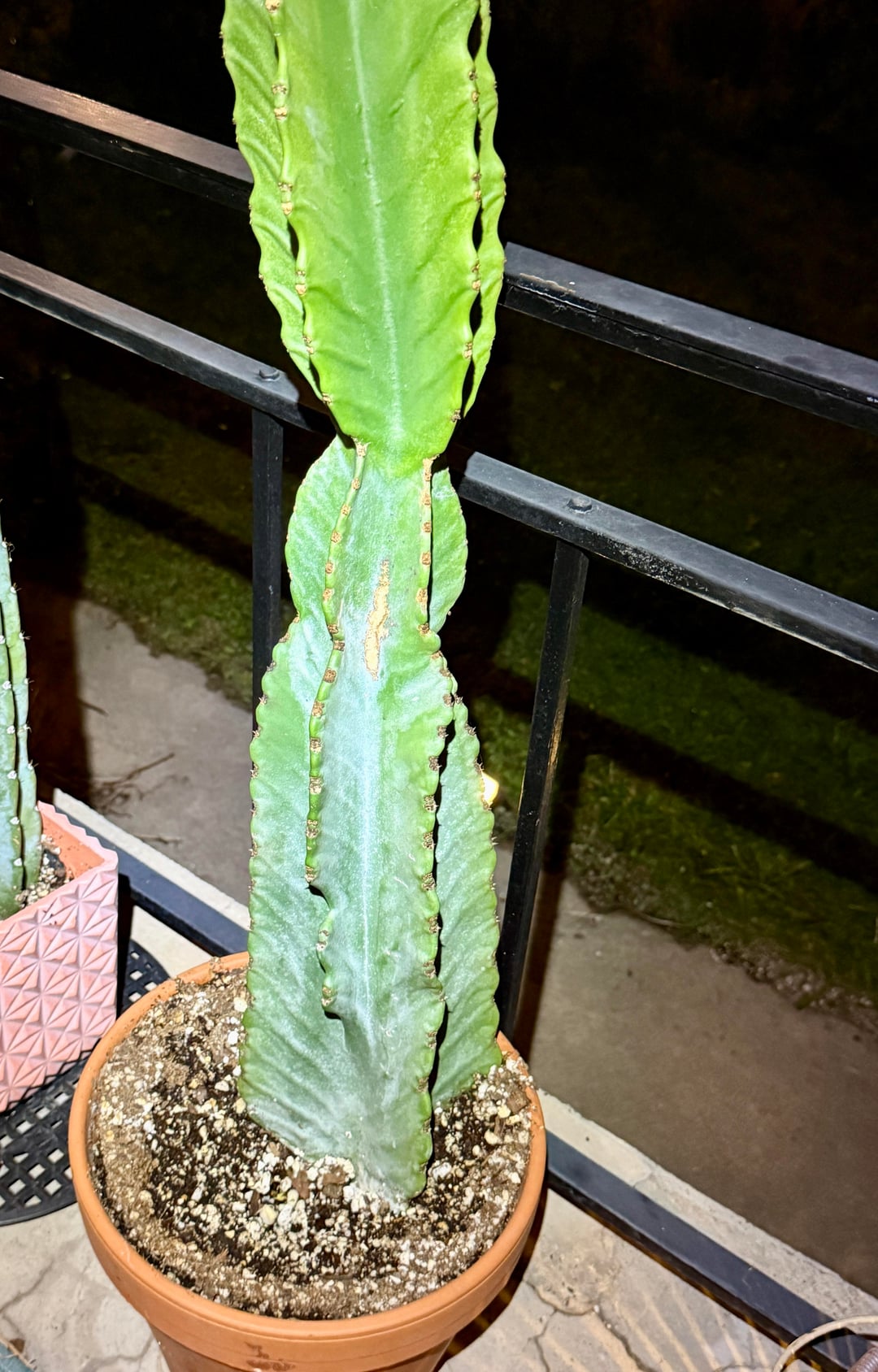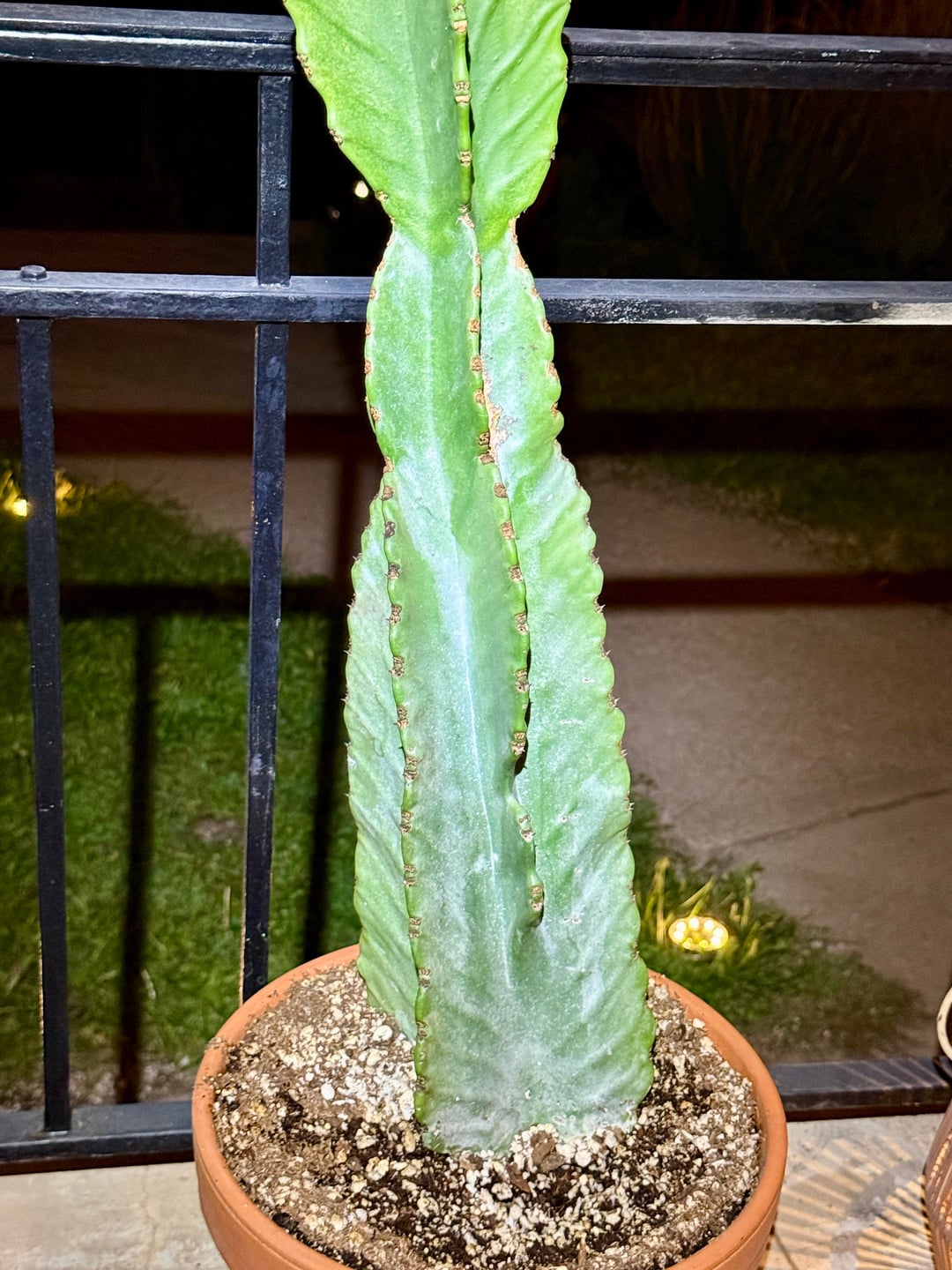 this is another guy that was gifted to me about a year ago from a neighbor bc it wasn't doing well. you can see the bottom half doesn't look great but it THRIVED this summer outside and grew so much and you can see the top half is much healthier. should i leave it as is? or would you chop off the top healthy part and prop? appreciate any help or advice as i learn how to care for these guys 🙂 thank you!