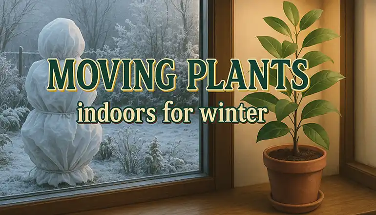 If frost has not yet arrived, allow the plant to adjust outdoors in shade for a week or two. In colder weather, move it into a cool room near a bright window. Covering it loosely with a plastic bag for several days can help increase humidity.