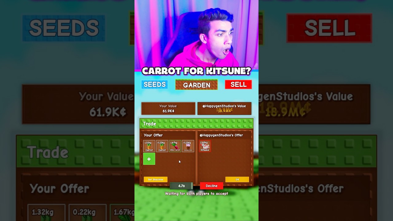 CARROT TO KITSUNE TRADE GROW A GARDEN! #growagarden #roblox #shorts