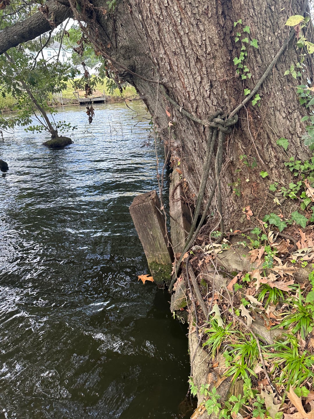 Is there any methods I could do to protect this large tree by the lake or will it need to be removed? There is a timber bulkhead along the shoreline but it’s in very poor condition.