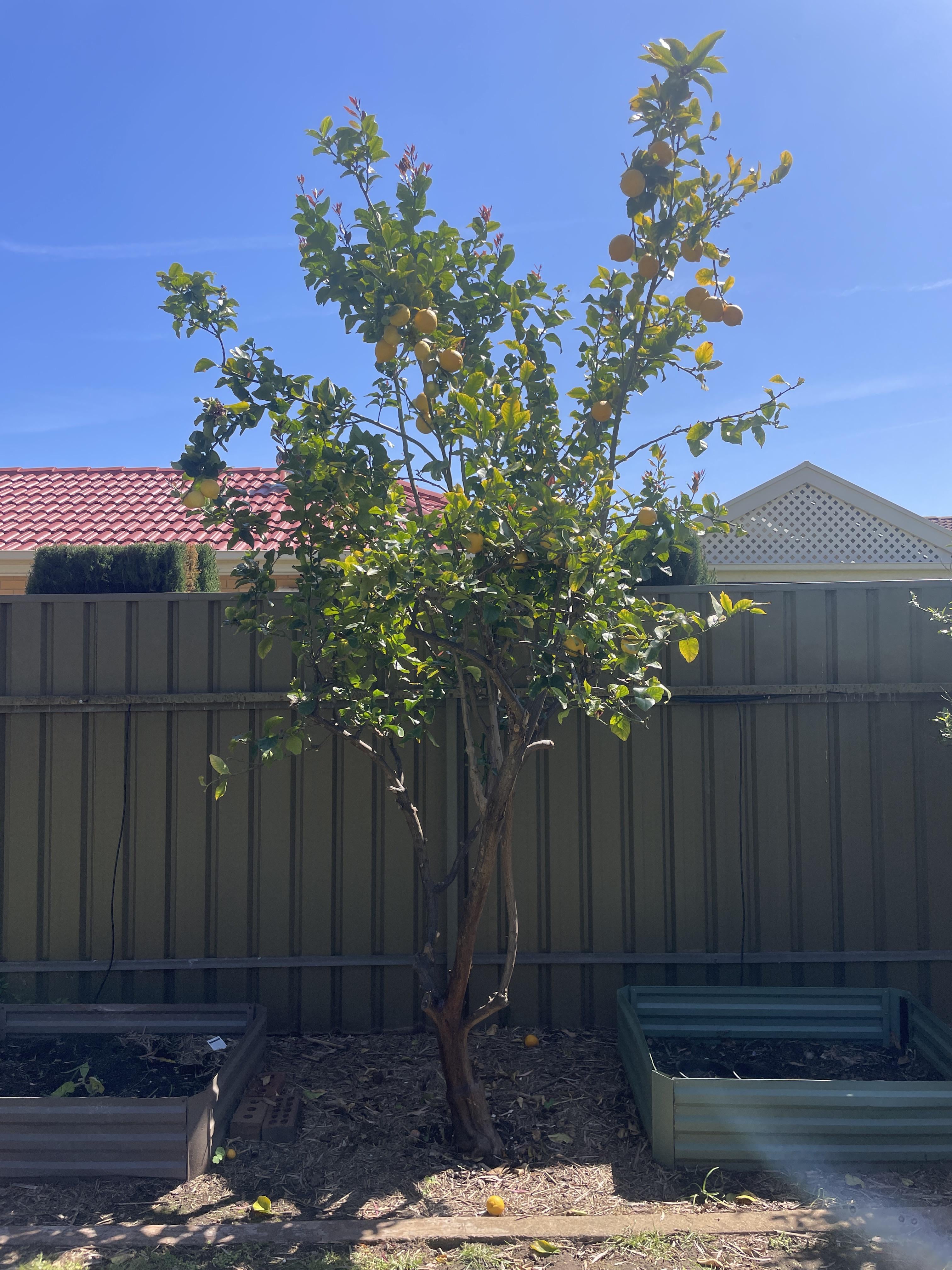Just moved into a new place in Adelaide. This old lemon tree was prolifically bearing fruit. The old owner appears to have cut it back quite drastically compared to old photos before handover a few weeks ago.