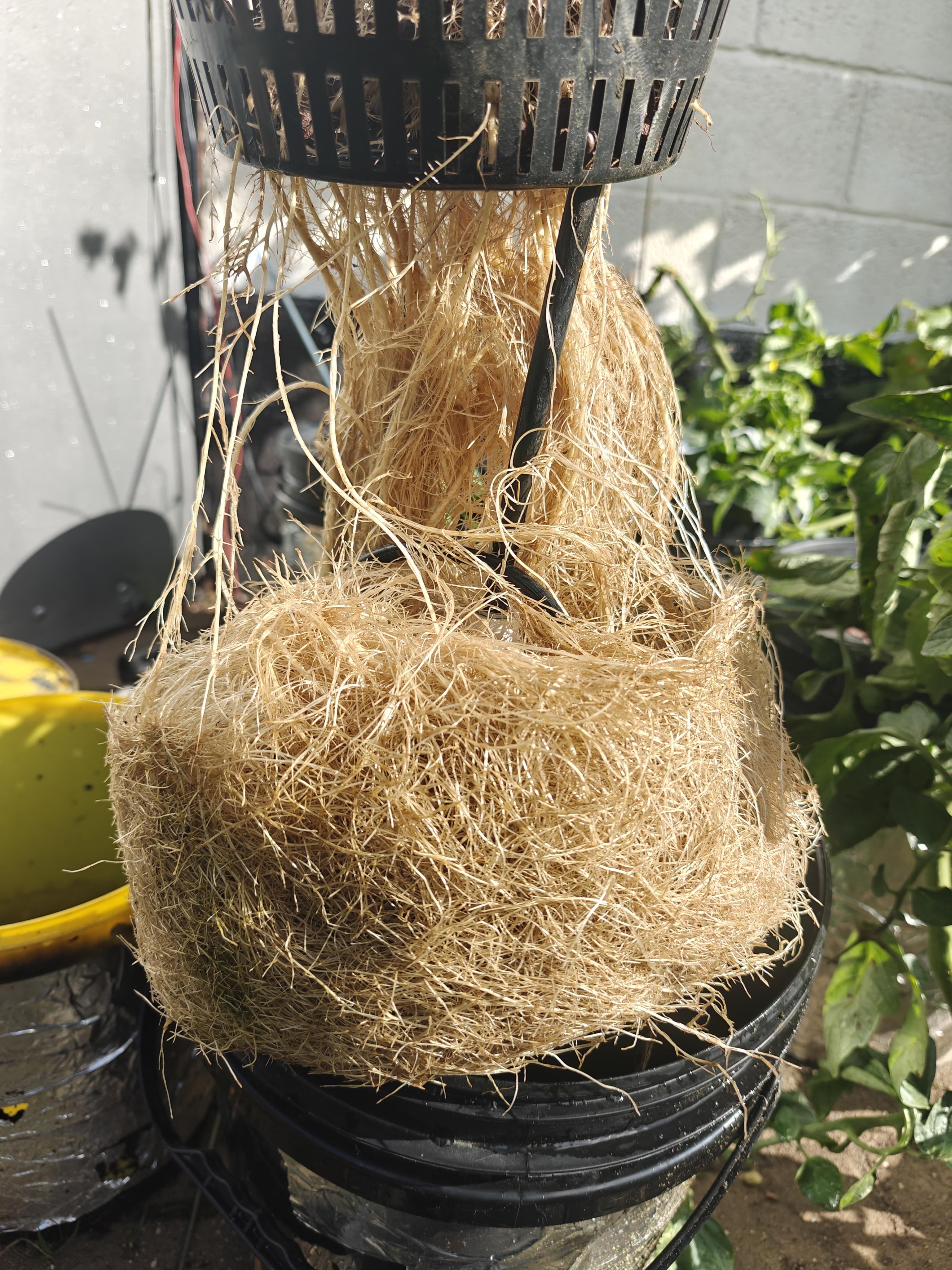 Safe to say this girl was happy and healthy! Gave me some good tomatoes in a relatively short time span. All outdoors, just normal feeding, no temperature control. Filled the bucket nicely with roots, and was thirsty! Had to refill the 5 gallon bucket every 3 days if sunny and every week if normal weather.