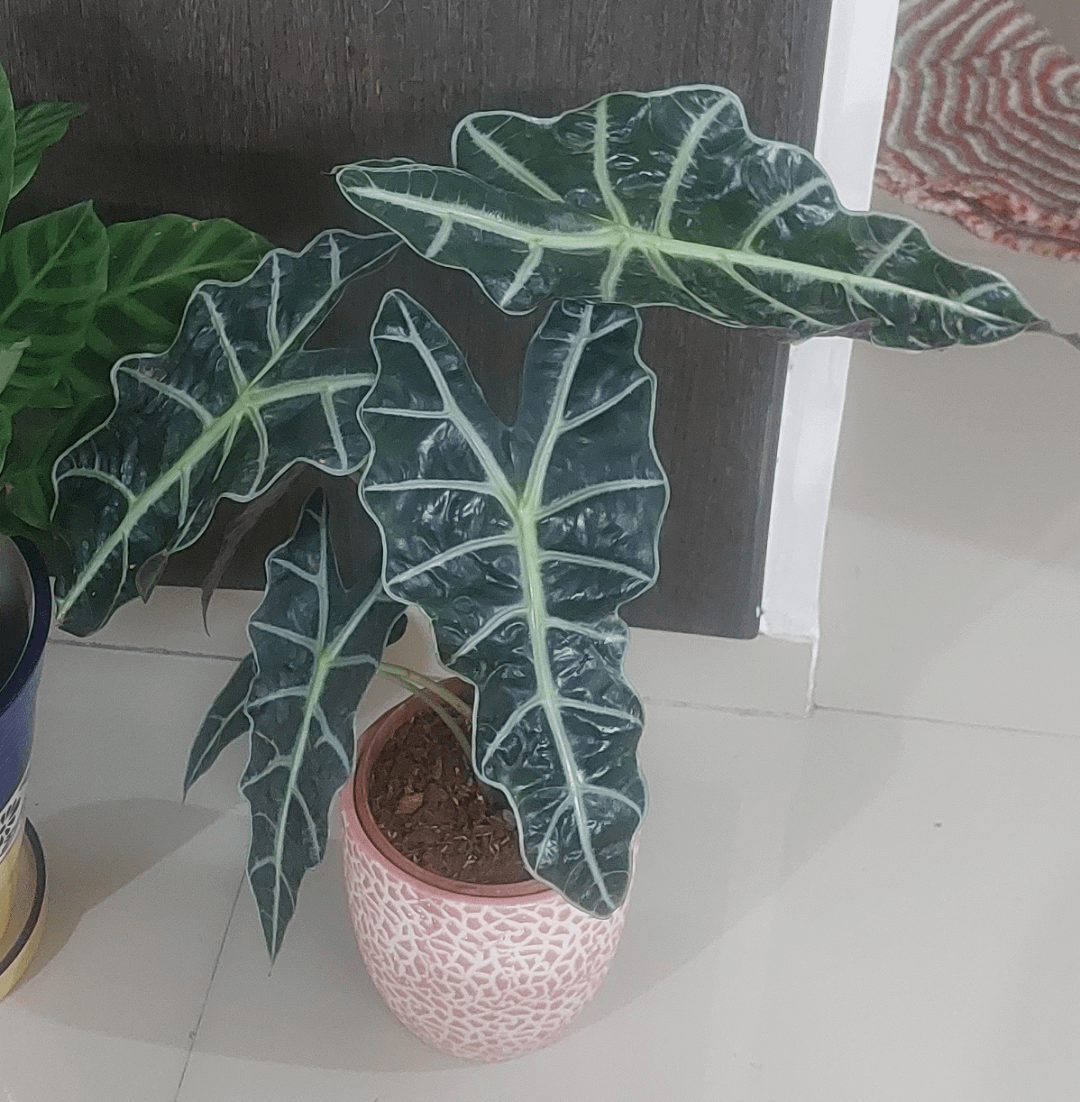 I'm new to alocasias and I've had my alocasia polly since 2 months (plant in pic 3). It hasn't grown at all. It gets a grow light and fertilizer. Today I checked its roots and it looks kinda root bound, but not so bad I think? Should I repot it?