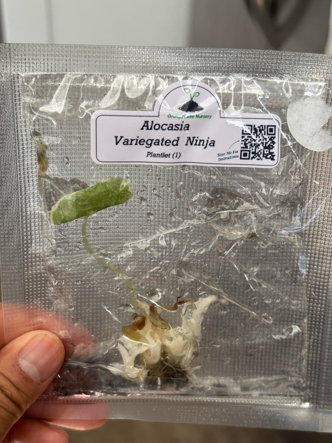 So this is my first ever tissue culture. It’s a Alocasia Variegated Ninja! From OrangeLakeNursery.