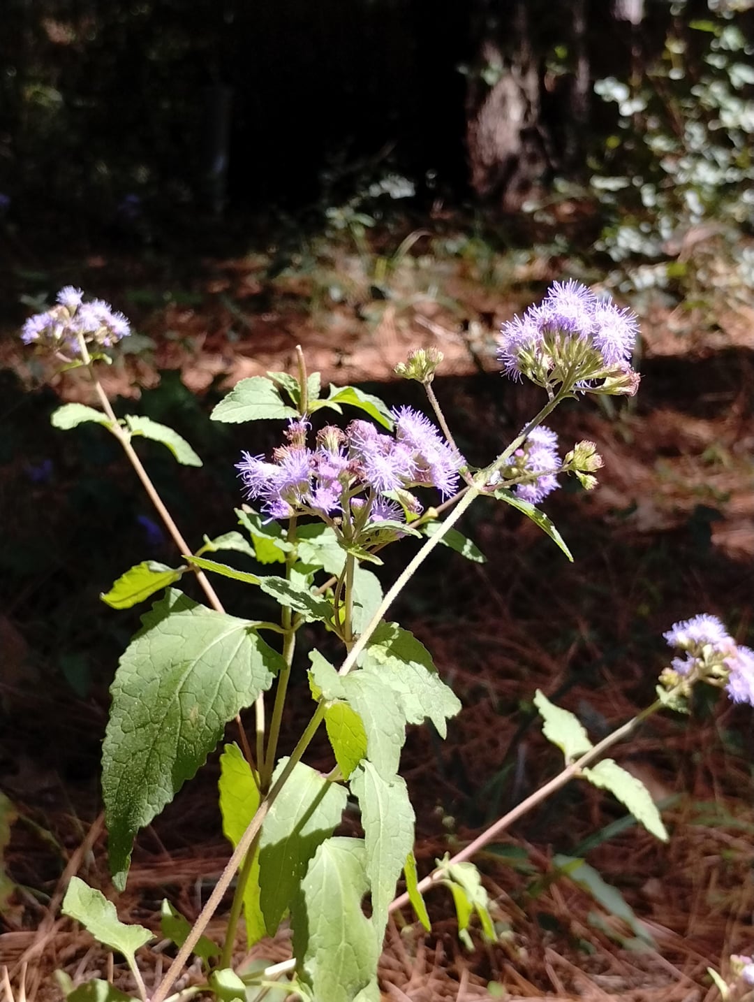 It's growing in northeast Louisiana. Zone 8B. On a hill and under a pine tree. The leaves are opposite of each other. The bunches of flowers are only about an inch across to an inch and a half. The plant is approximately 12 inches tall. The leaves don't have smooth edges.