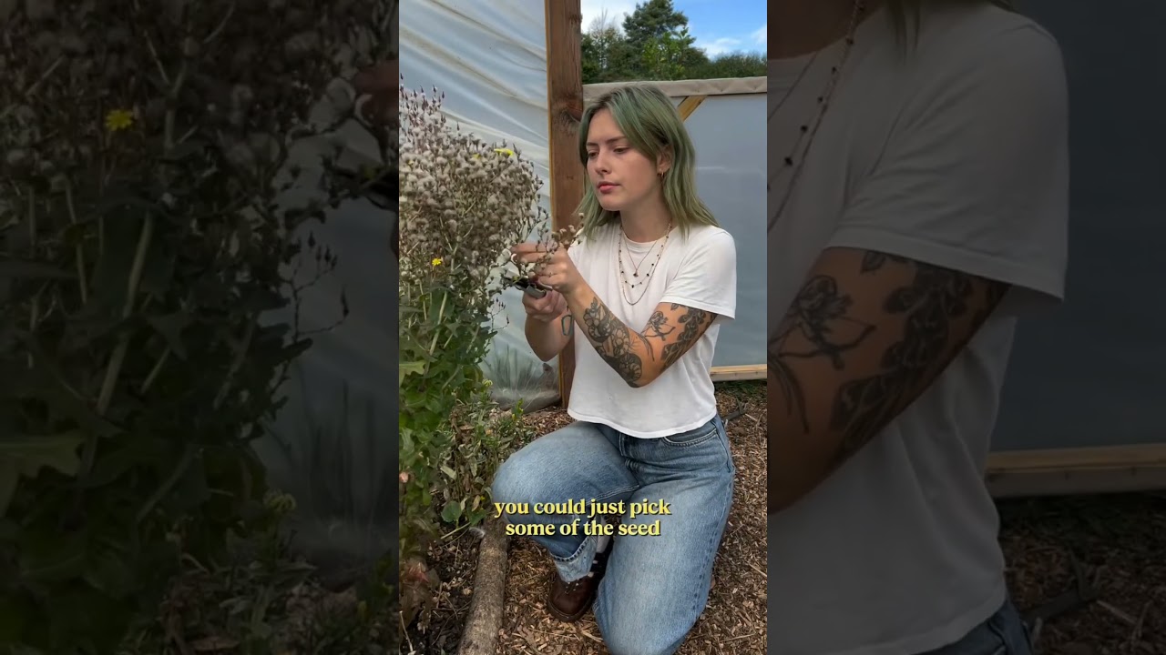 Here’s how to save lettuce seeds so you never have to buy them again. When lettucees want to reproduce, they send up these big tall flower stalks. Then they produce these little yellow daisyike flowers, which is because lettucees are actually in the same family as daisies and dandelions. You’ll know the seeds are ready to collect when the yellow flowers have turned into these fuzzy little balls of fluff. If you only want to collect a few seeds, you could just pick some of the seed heads off by hand, but I find this quite fiddly and always end up dropping loads of them. So, I like to cut the stalks and place the seed heads upside down inside a paper bag. Give it a good shake and gently rub it between your hands to remove as many of the seeds as possible. Then, I pour them into a bowl and carefully blow off the fluff, also known as the chaff, until I’m left with relatively clean seeds. Leave them to dry out for a day or two as this helps them to store for longer. Then, pop them into envelopes ready to sew or gift to friends and neighbors. Saving seeds protects the biodiversity that feeds us, and you get free plants. So, let me know what other foods you’d like to be able to grow for