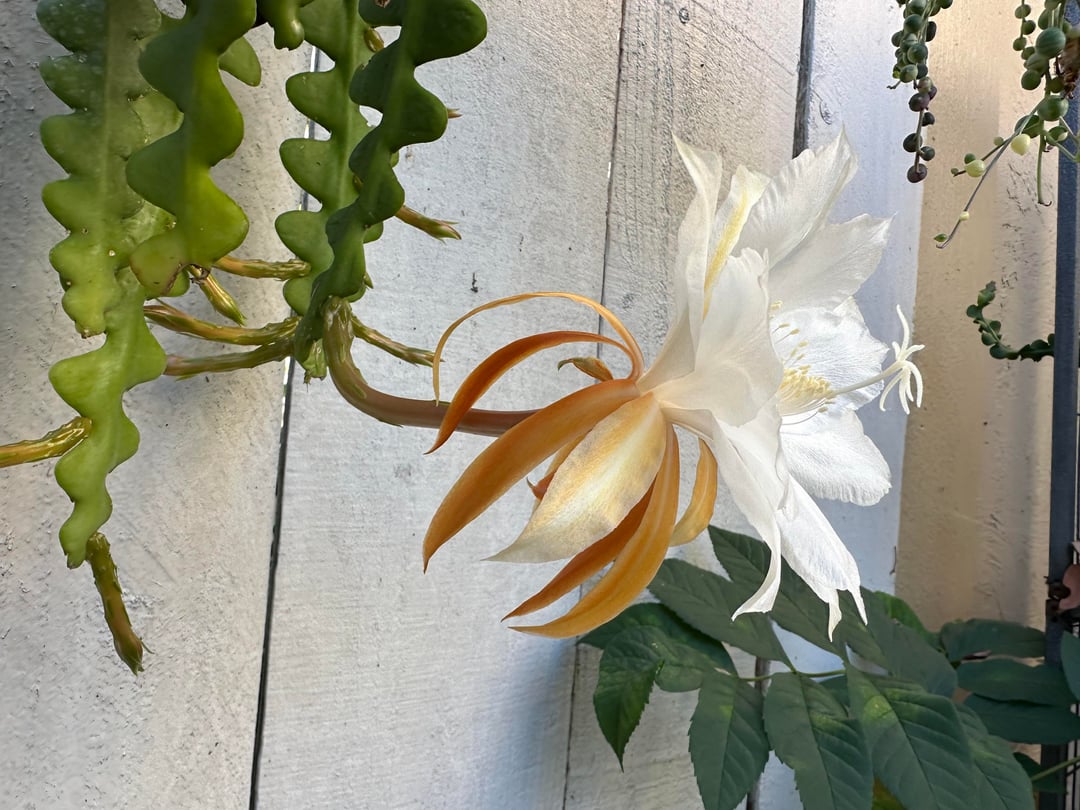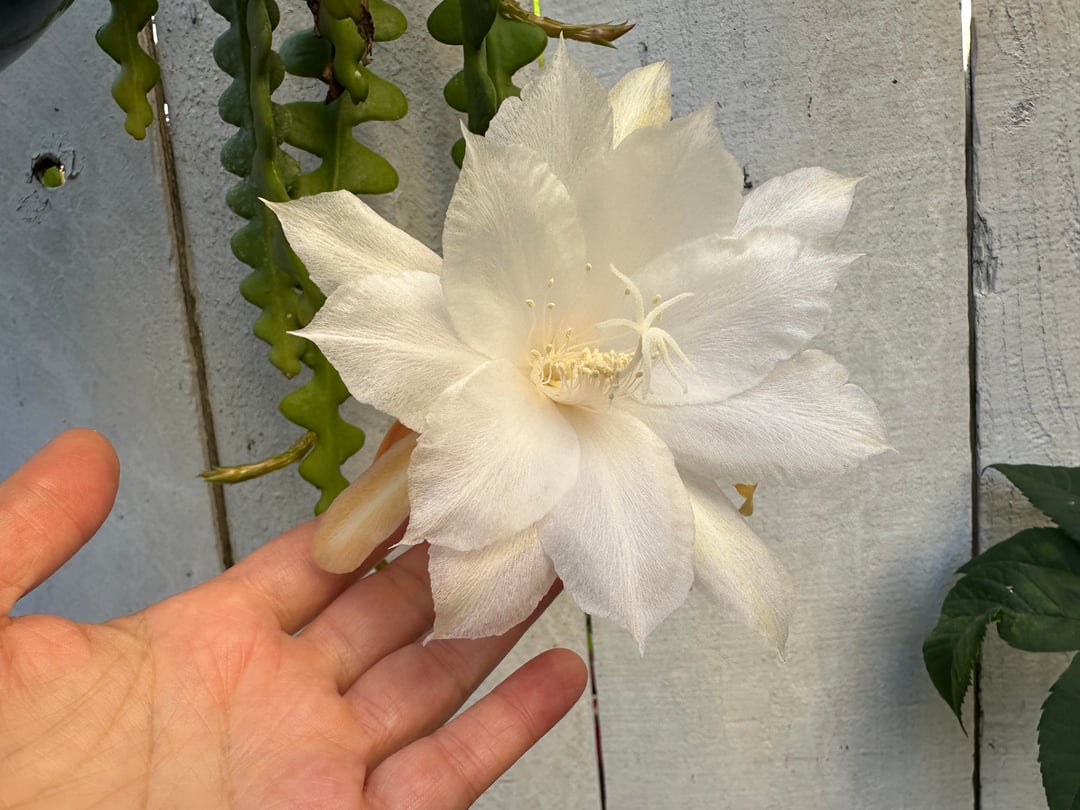 I’ve had this Selenicereus Anthonynaus (fish bone cactus) for 3 years and it’s finally blooming for me! This is the first one that opened up last night. by pearlescent8 cacticactuscactuses 2 Comments Froglegs61 3 hours ago WOW! Worth the wait! Gymmie2235 3 hours ago Bloem!!!!