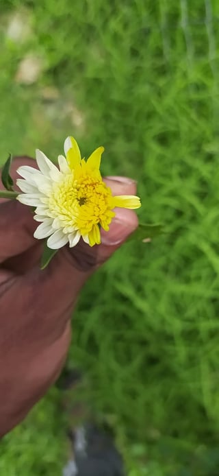 I sell chrysanthemums that are sourced from Altman Specialty Plants, LLC (formally Lone Star Growers) out of San Antonio, and their mums do this at times. I am not sure the causation. I always thought it was just recessive genes making an appearance since most garden mums have been hybridized and selectively bred many generations over.