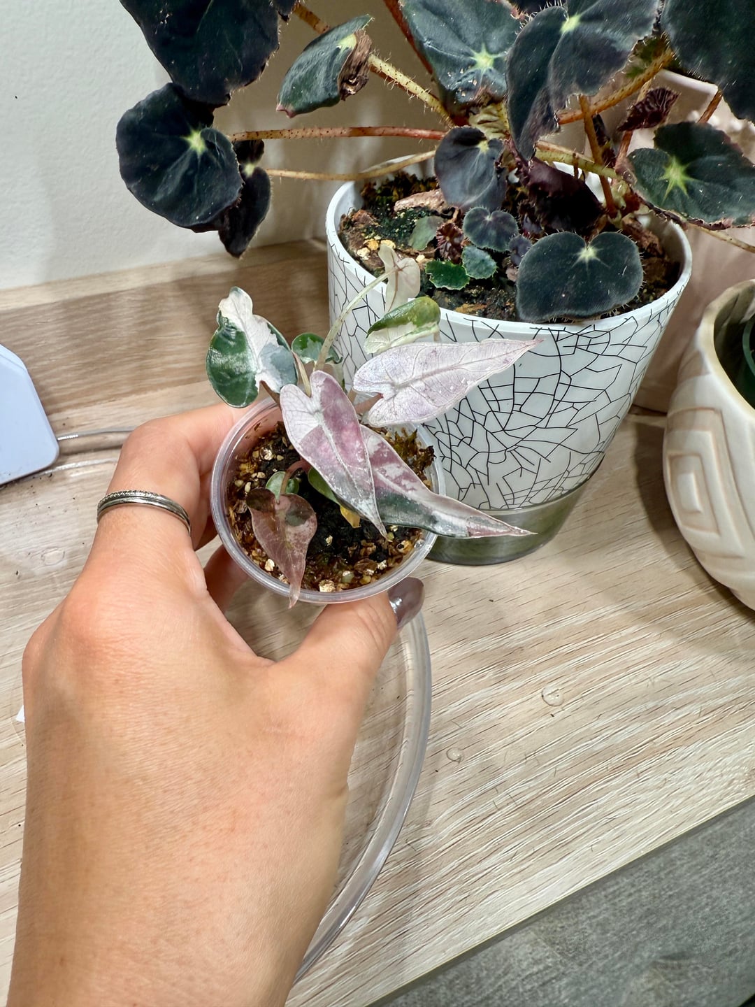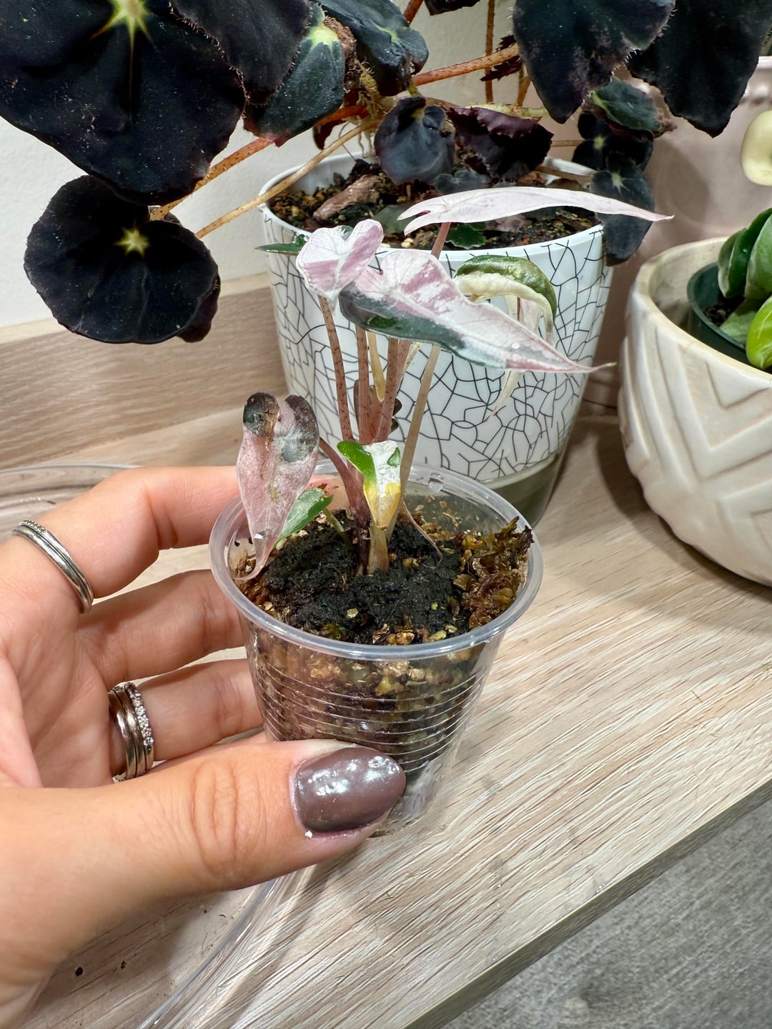 Just got this Variegated Alocasia Bambino Pink baby in the mail this week! Any advice/tips on keeping it happy? It’s currently in a glass cloche with a Sansi grow light right above it as well as a track light about 10 ft away. by golden_plant20 alocasia 3 Comments Emelyyca 2 weeks ago I personally would repot. It likes chunky soil. Don’t over water! Humidity is key! kelleymrial 2 weeks ago Absolutely stunning!!! Where did you get it? Aznlyez18 2 weeks ago Congrats! Mine is the easiest grower of all my Alocasias. Quick growers too