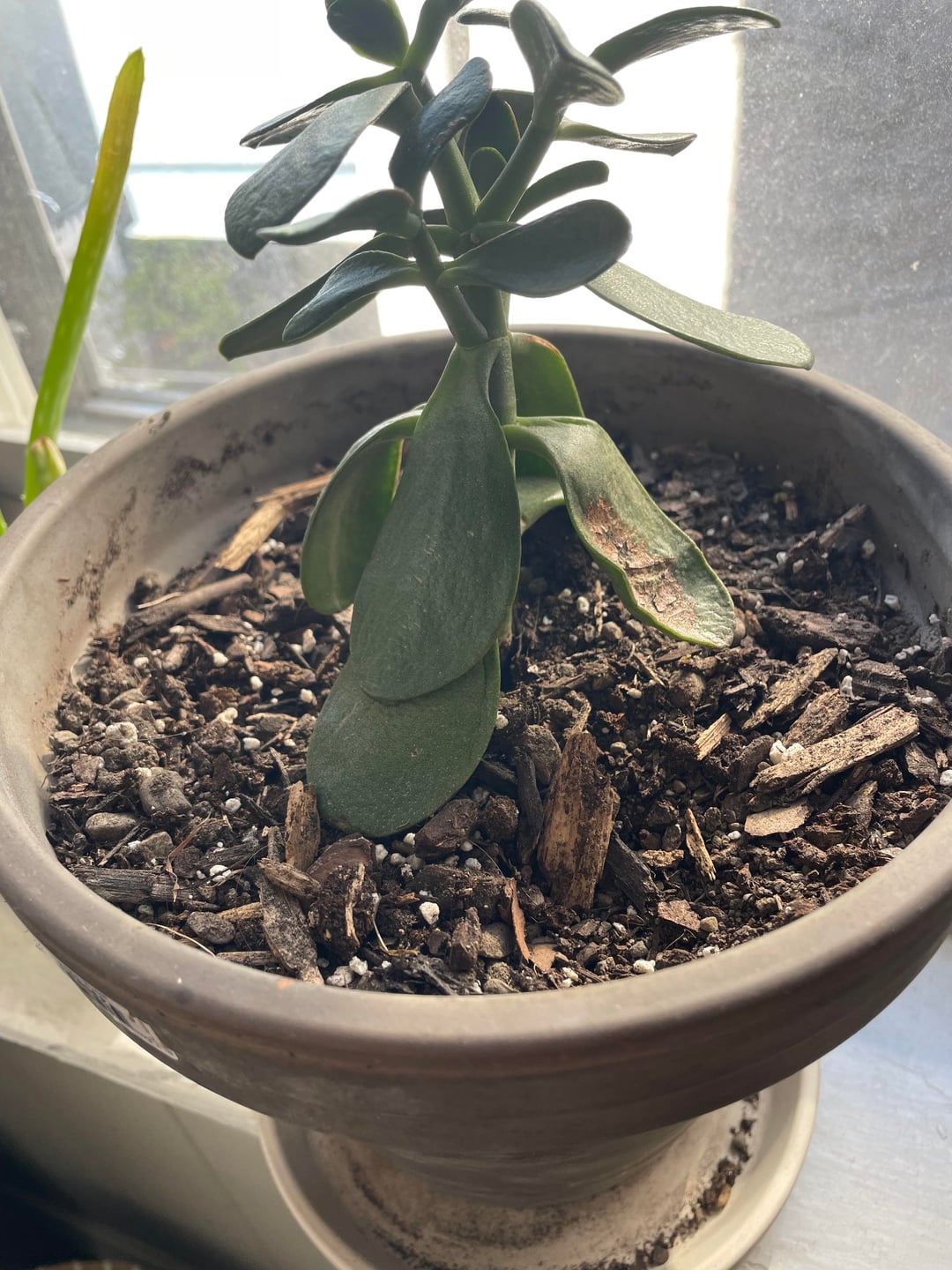 hi all! just adopted this jade from a friend, and live in a rowhouse so i’m short on window options (this one is second floor, north facing). i could put it outside but that might be too much direct sun (?). the top leaves look ok and have the red tips, which i’ve been told is good, but i’m worried about the bottom leaves? trying to avoid overwatering though, so sticking to watering once a week or 10 days. any help welcomed!!