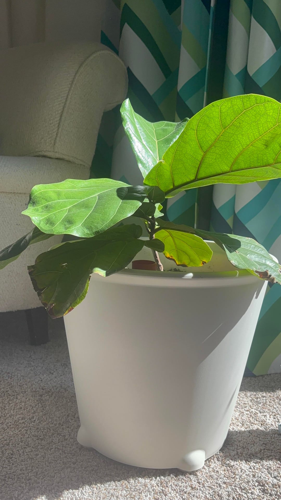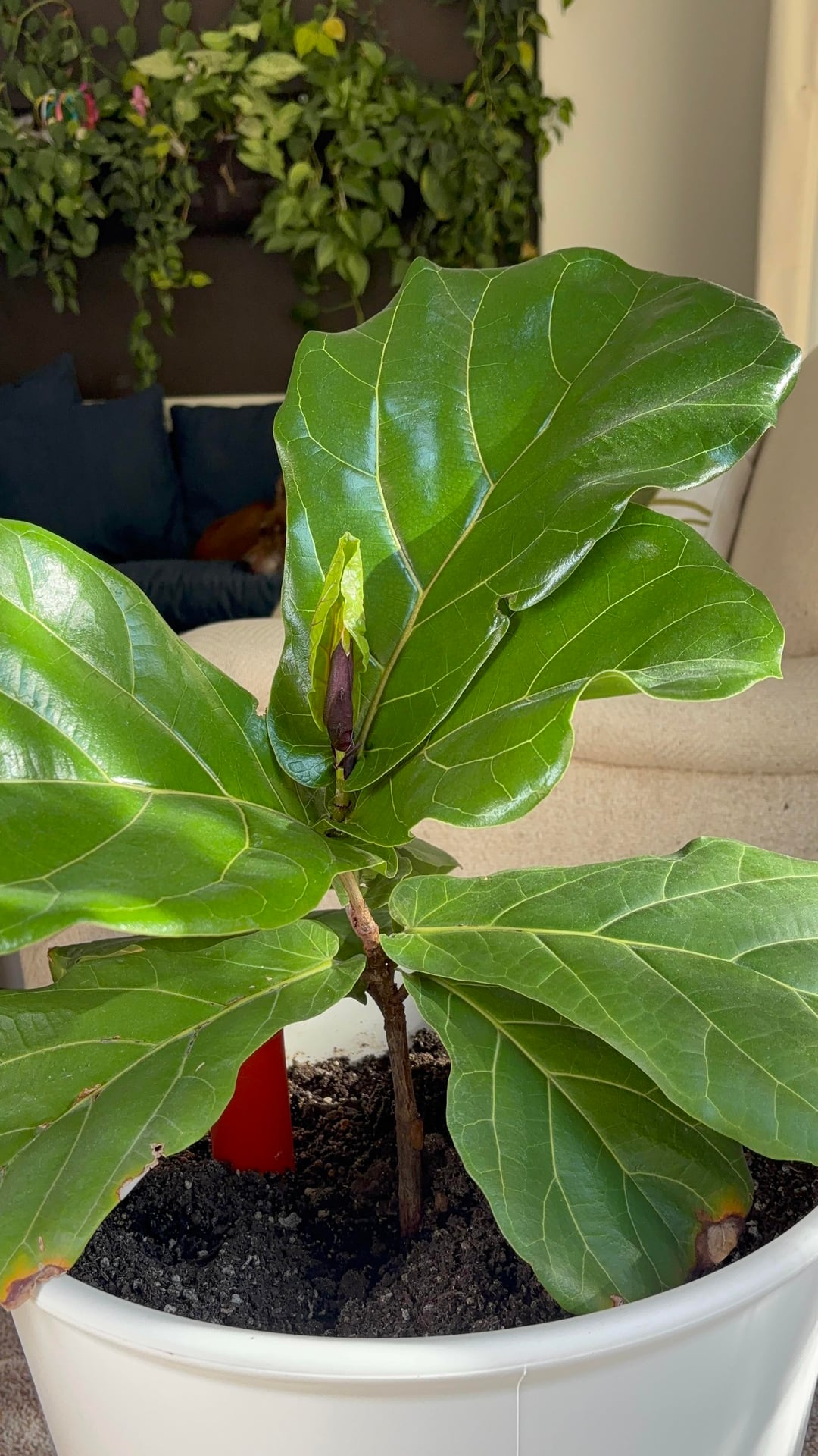 About four years ago, a friend gave me a propagation of her FLF. The prop had been living in a jar for at least two years. I was so excited. I took it home, planted him in some soil and soon after, it began to sprout some new growth. After awhile the growth really slowed despite my best efforts, and my mom offered to help me transfer it into a bigger pot. Growth was still slow but it seemed happy enough. I found this sub and then learned transferring might have been counterproductive. 🙃 This past spring/summer, he seemed inspired to become more tree-like and sprouted four or five leaves one after the other. Up until yesterday, all the leaves were pointed upward. I woke up this morning and almost all of them except the very top of the plant look like a fully bloomed flower bud. I have babied Standin on Fidness for years now. Am I about to lose him or am I just letting anxiety win today? lol. I water only when the first few inches of the soil feel dry. He’s in a southwest facing window. Tons of direct morning light, and indirect afternoon light.