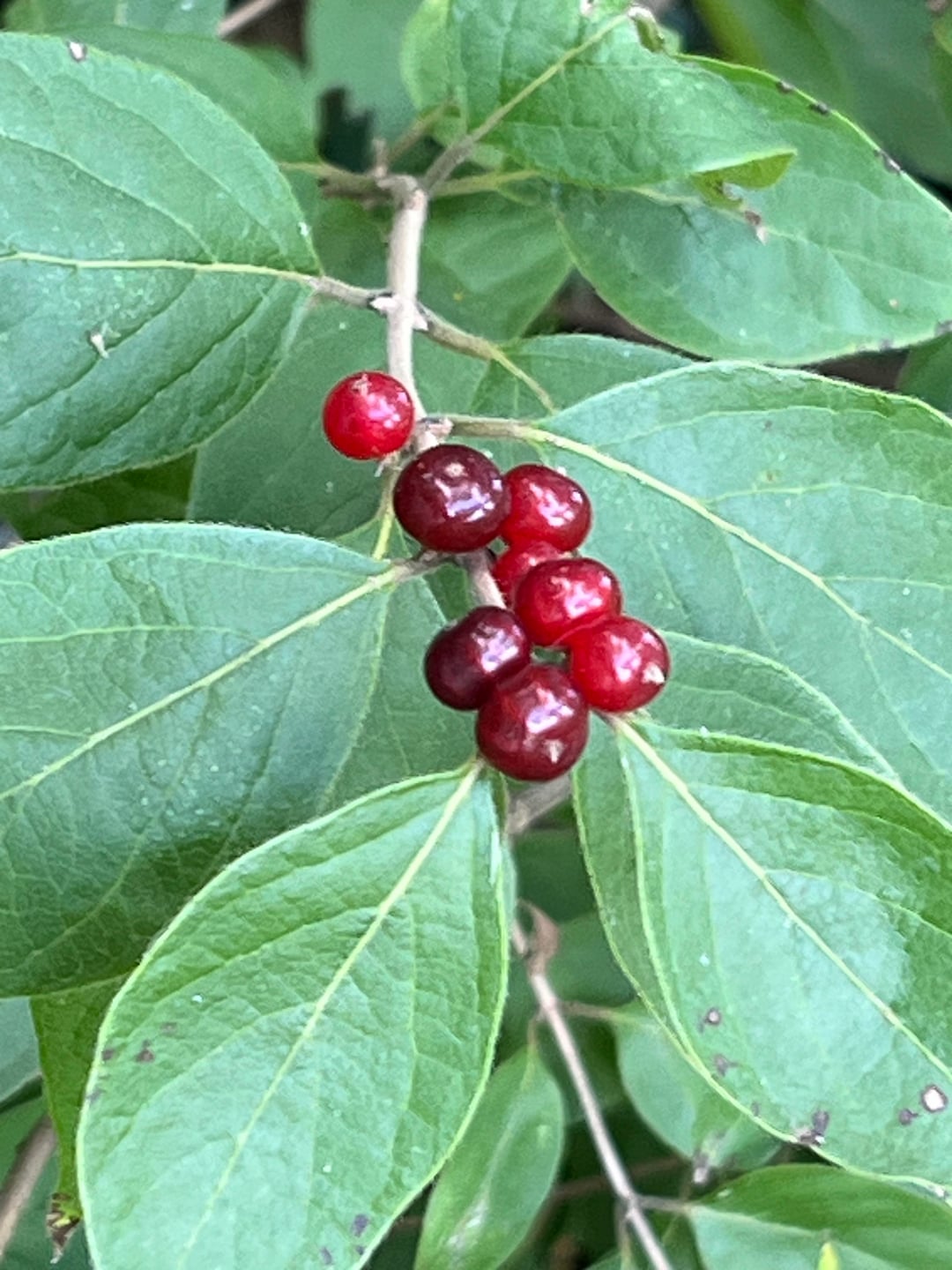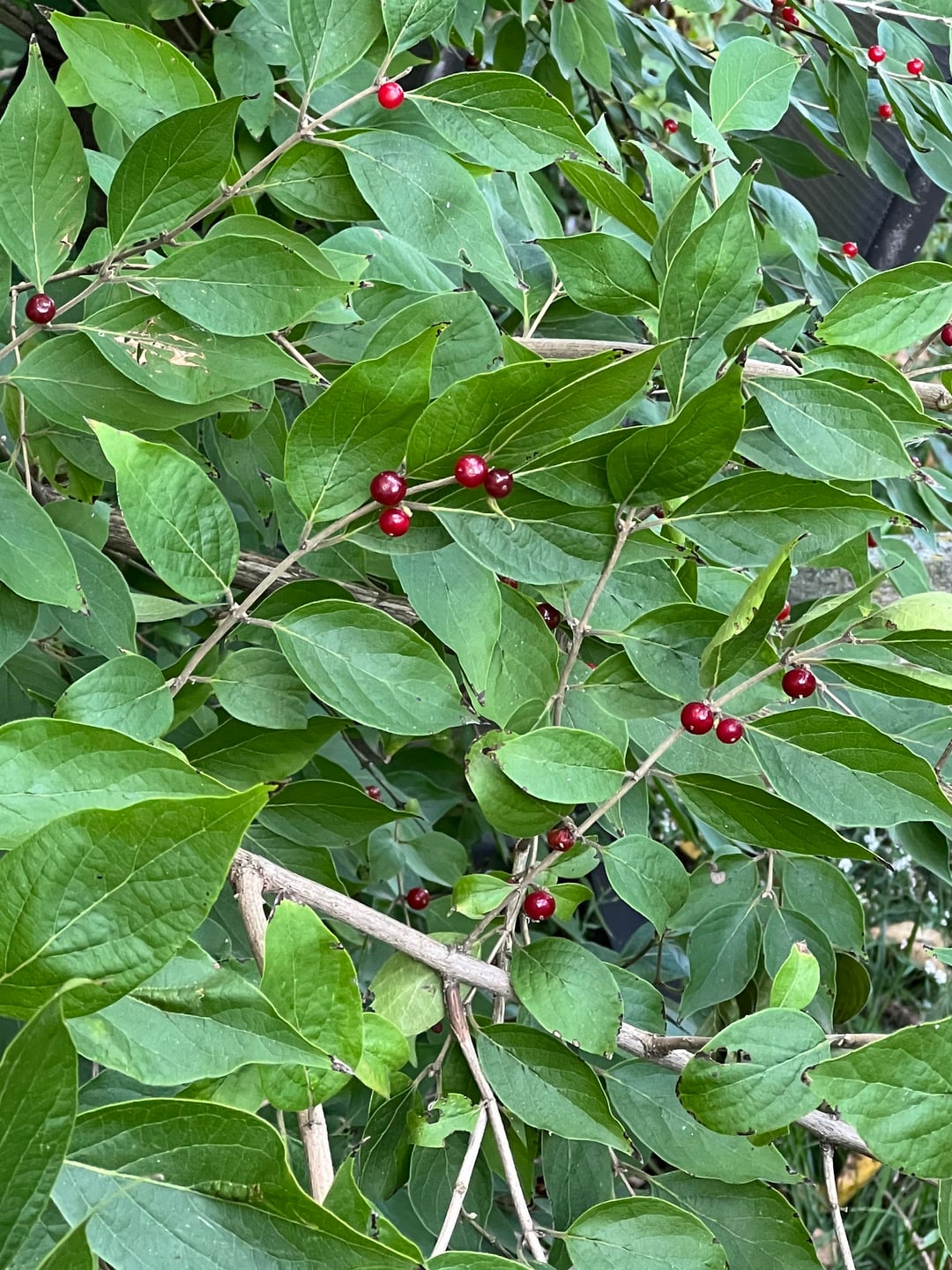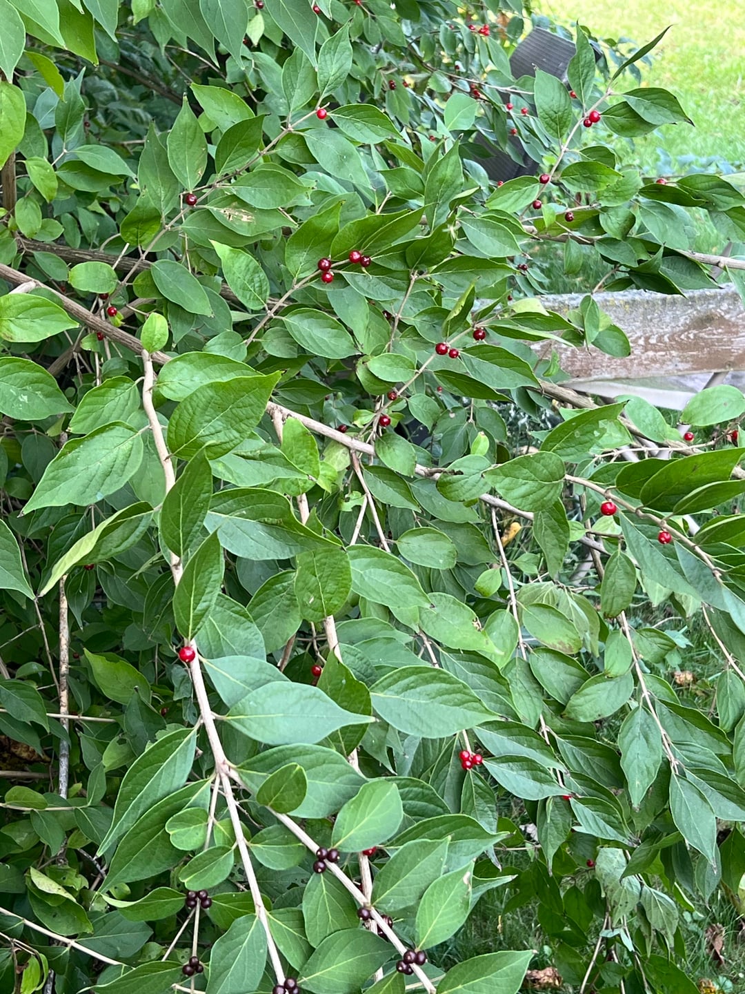 It appears to be shrub Honeysuckle. Very very invasive. Not a desirable shrub. Just an opinion.