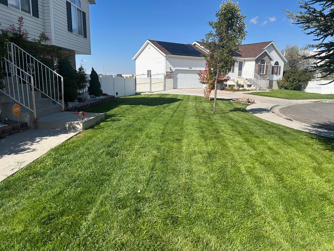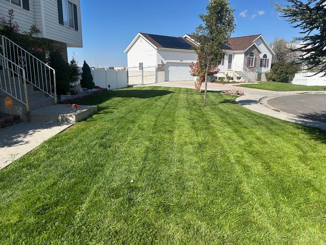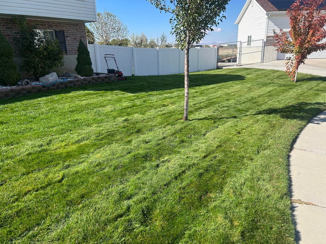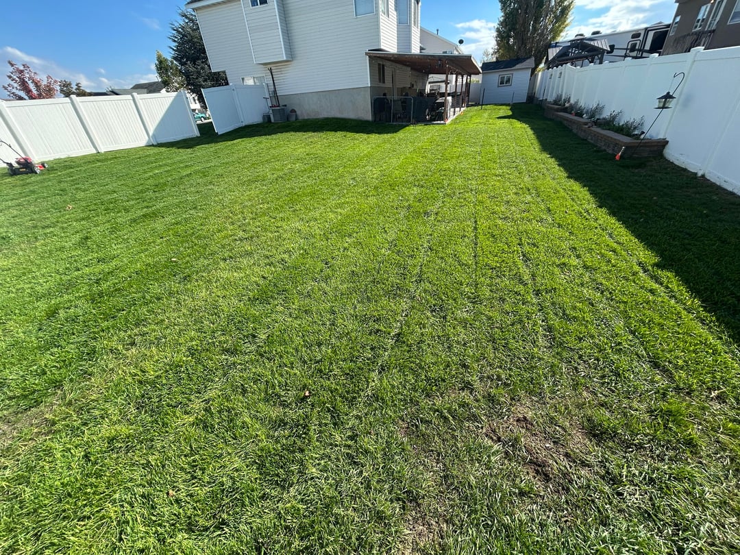 Laid some Super Turf II LS Tall Fescue-Bluegrass Blend grass seed from united seed on September 16th. Today was the first mow day, I’m happy with results. Dogs had a blast on it during the hot dry summer we had, and I’m pretty sure I had some grub kill in the back lawn. Now to make sure the roots are strong for winter here in SLC, Ut. It’s getting cold and damp, any recommendations would be appreciated!