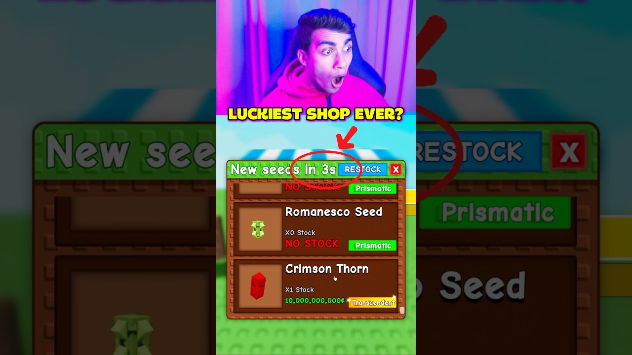 Let’s have a look at the seed shop. Wait, there’s only 10 seconds left. Wait, wait, wait. Is there nothing in the stock? Yo, we got the crimson thorn. Let’s go.